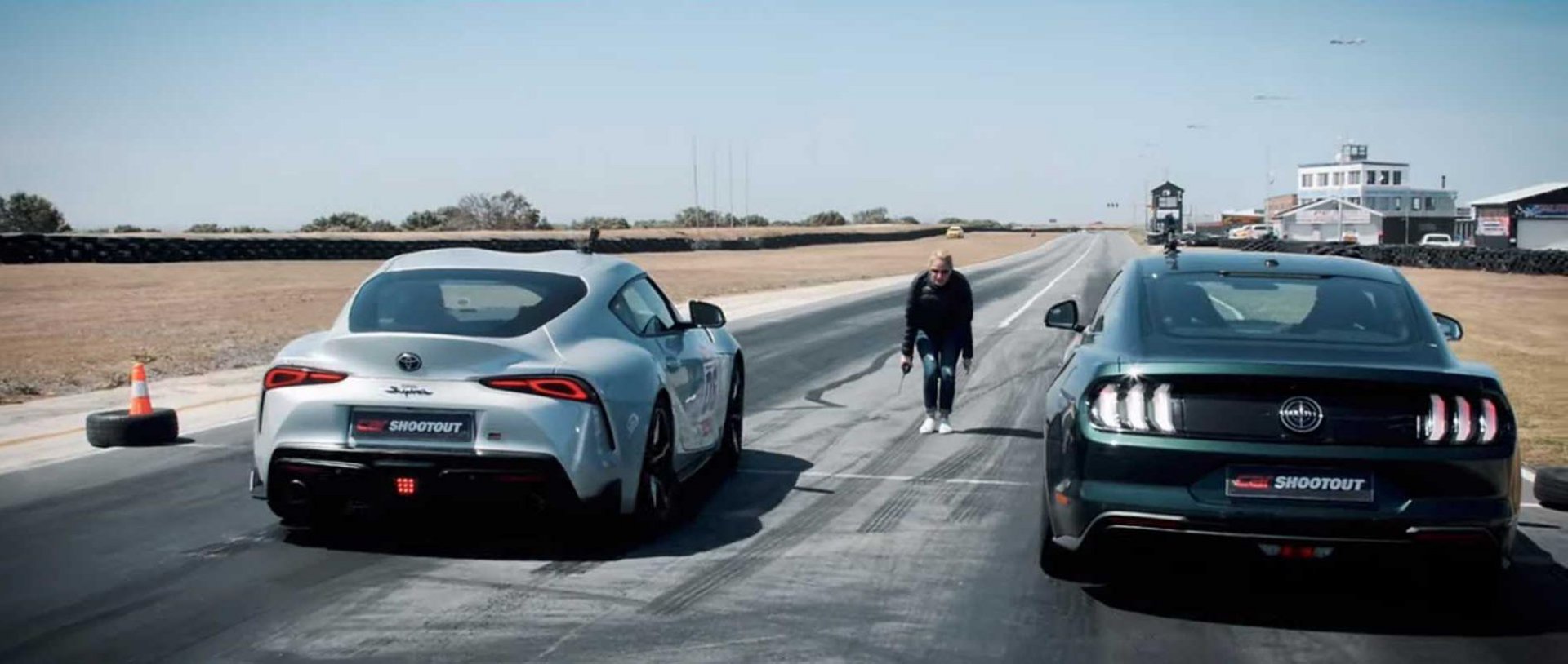 Από την μία υπάρχει η Mustang Bullitt με τον V8 κινητήρα των 5,0 lt με απόδοση 460 PS και 529 Nm και από την άλλη η πολύ-προβεβλημένη Toyota Supra των 340 PS και των 500 Nm. Το σενάριο το βίντεο που γύρισε το περιοδικό Car Magazine SA έχει να κάνει μία άτυπο κόντρα στο ¼ του μιλίου (δηλαδή σε επιτάχυνση στην ευθεία 400 μέτρων).