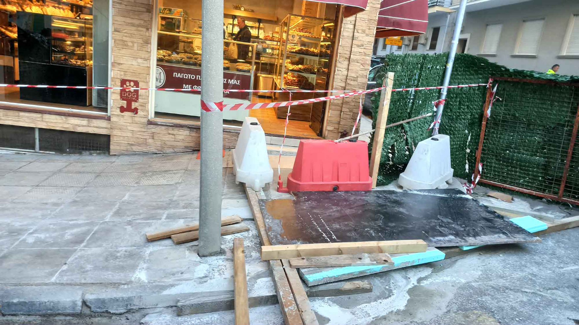Μία κολώνα φωτισμού βρέθηκε ακριβώς στη μέση της καθίζησης, με τον «κρατήρα» που δημιουργήθηκε να έχει μήκος περίπου 2-3 μέτρων και πλάτος από 1 έως 2 μέτρα. Η καθίζηση συνέβη το μεσημέρι της Τετάρτης (14/1) και στη συνέχεια τα συνεργεία πραγματοποίησαν «τσιμεντοενέσεις» στο σημείο, προκειμένου να μην υπάρξουν περισσότερα προβλήματα τόσο στο οδόστρωμα, όσο και στη στατικότητα των κτιρίων.