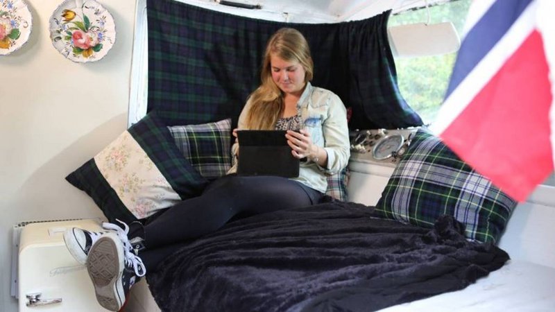 Η διακόσμηση είναι οικιακού στιλ, ωστόσο στο ταμπλό έχει διατηρηθεί ο διακόπτης της μίζας και το κλειδί. Βέβαια, η βαμμένη σκουριά στο αμάξωμα κάνει το θεατή να υποπτεύεται ότι το αυτοκίνητο δεν είναι ασφαλές για χρήση στο δρόμο. Το γερμανικό van κατέχει μία μόνιμη θέση στάθμευσης στον κήπο του ζευγαριού, όντας επίσης μία επιλογή για όσους τουρίστες ψάχνουν έναν Airbnb ξενώνα...