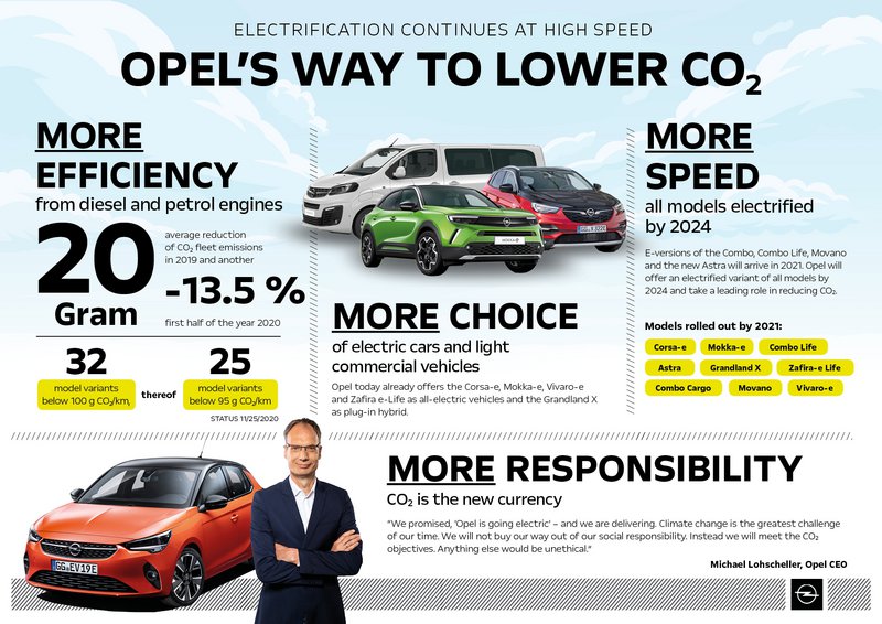 Η Opel είναι ηλεκτρική, όπως αποδεικνύεται από την πολυσυλλεκτική γκάμα των ηλεκτρικών μοντέλων που ήδη διαθέτει στην αγορά. Οι πελάτες μπορούν να απολαμβάνουν οδήγηση μηδενικών ρύπων με μικρά ή μεγάλα οχήματα.