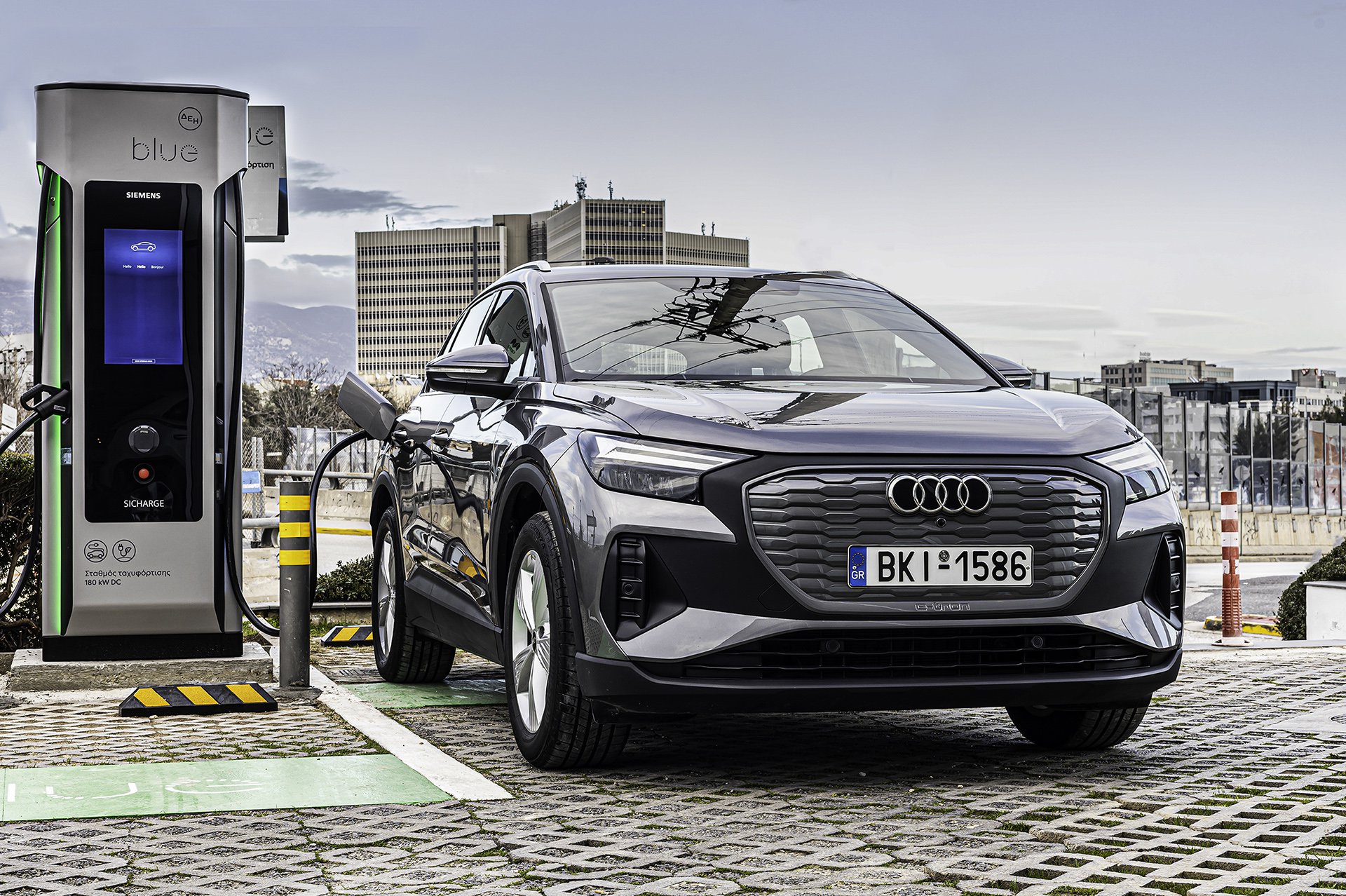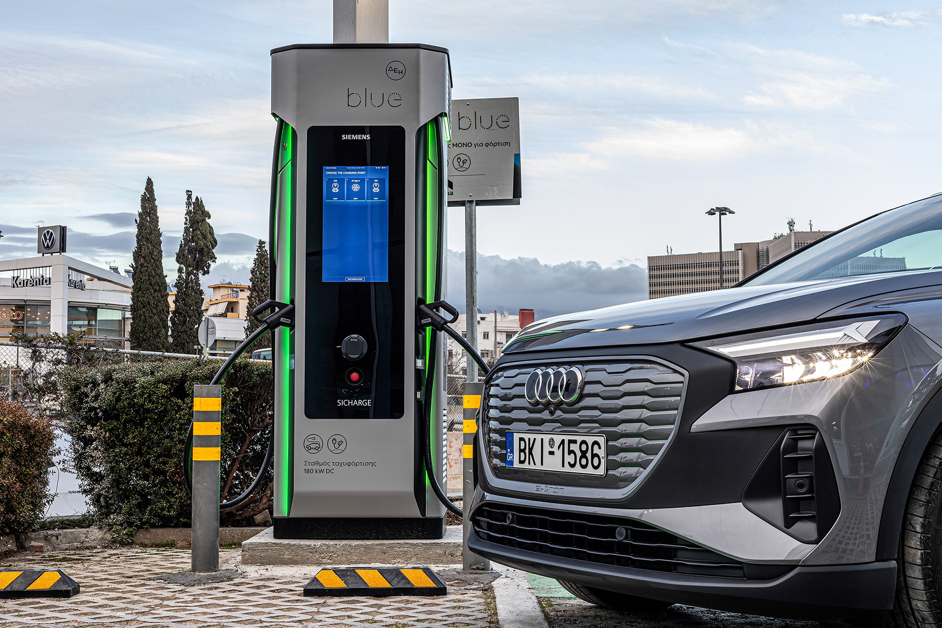 Πρόκειται για τους πλέον ισχυρούς υπερφορτιστές ηλεκτρικών αυτοκινήτων που έχουν εγκατασταθεί μέχρι στιγμής σε αστικό περιβάλλον στην Ελλάδα, δίνοντας τη δυνατότητα σε οδηγούς ηλεκτρικών αυτοκινήτων, κάθε μάρκας και όχι μόνο της Audi, να φορτίσουν εξαιρετικά γρήγορα. Πρακτικά, αυτό σημαίνει ότι για παράδειγμα ένα Q4 e-tron, το νέο compact ηλεκτρικό SUV της Audi, μπορεί σε μόλις 10’ της ώρας να φορτίσει με αρκετή ενέργεια ώστε να διανύσει απόσταση 130 χιλιομέτρων. Κάθε υπερφορτιστής έχει δύο θέσεις φόρτισης με συνεχές ρεύμα (DC) και μία θέση φόρτισης εναλλασσόμενου ρεύματος (AC), για φόρτιση plug-in υβριδικών μοντέλων.