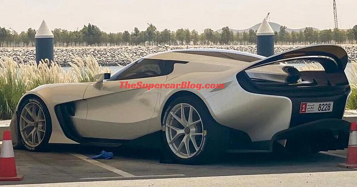 Στη φωτογραφία, βλέπουμε ένα νέο όχημα της Ferrari τα οποίο είναι στο στάδιο της εξέλιξής και το οποίο διακρίνεται για τη διαμόρφωση του πίσω μέρους του αμαξώματός του και την αεροτομή που υπάρχει εκεί.