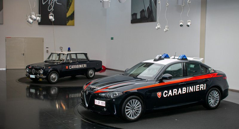 Η συνεργασία της Alfa Romeo με το σώμα των Carabinieri ξεκινά τη δεκαετία του 1950. Λίγα χρόνια αργότερα, η ένταξη της Giulia στο στόλο τους, δημιούργησε τη πρώτη σύνδεση με το όνομα του μοντέλου που εντυπωσίασε με την εμφάνιση και την ταχύτητα του. Με την πάροδο των χρόνων πολλά μοντέλα της Alfa Romeo «ντύθηκαν» στα χρώματα των αστυνομικών αρχών της Ιταλίας, συμπεριλαμβανομένων των Alfa 90, 75, 155, 156 και 159, που ήταν και η προκάτοχος της σύγχρονης Giulia.