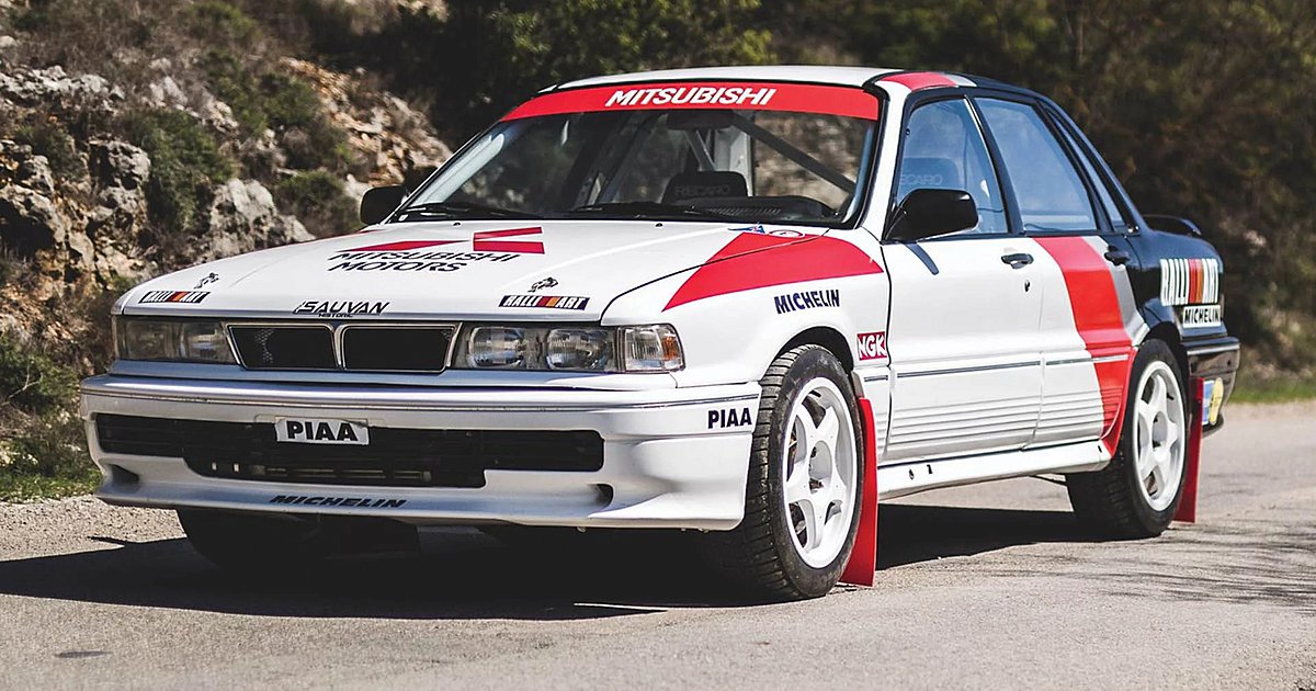 Πέρα από το Evo όμως υπήρχαν και πολλά άλλα αγωνιστικά όπως το Galant VR-4 που βλέπετε κατηγορίας Group A. Το συγκεκριμένο αγωνιστικό είχε κατακτήσει το 1990 το Rallye Côte d’Ivoire Bandama. Φυσικά ήταν τετρακίνητο με την παλιά καλή συνταγή με το κεντρικό ενεργητικό διαφορικό, είχε και ενεργητική τετραδιεύθυνση ενώ κάτω από το καπό υπάρχει ένας turbo δίλιτρος τετρακύλινδρος κινητήρας.