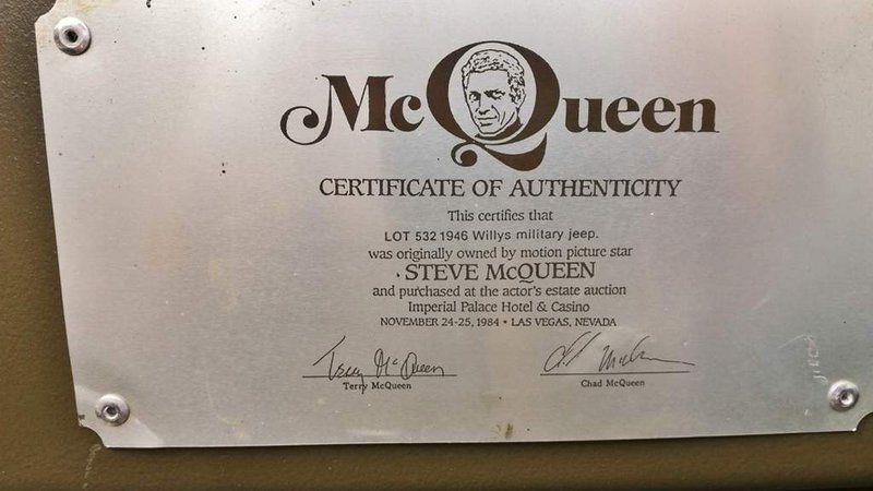 Παρά την ιστορία του στον αμερικανικό στρατό, το Jeep του McQueen βρίσκεται σε πρωτόγονη κατάσταση. Ωστόσο, διατηρεί έως και σήμερα σπουδαία χαρτιά και έγγραφα, που αναφέρονται στους σπουδαίους ιδιοκτήτες του. Χαρακτηριστικό δείγμα είναι η πλάκα, που βλέπετε στις φωτογραφίες.
