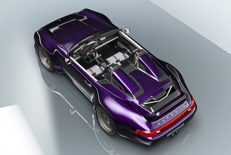 Η πρώτη μονάδα που κατασκευάστηκε είχε σκούρο πράσινο χρώμα και παρουσιάστηκε τον Αύγουστο στο Monterey Car Week. Αυτή τη φορά η επιλογή του μωβ-βιολετί προκαλεί ακόμα μεγαλύτερο θαυμασμό αφού “παντρεύεται” άψογα με τη συνολική εικόνα και ανεβάζει το project -τουλάχιστον- ένα επίπεδο. Στο ίδιο χρώμα έχουν βαφτεί και οι δαγκάνες στα δισκόφρενα που ξεπετιούνται μέσα από τις ζάντες τύπου Fuchs. Από εκεί και πέρα πολλά carbon στοιχεία έχουν τοποθετηθεί σε διαφορετικά σημεία του αυτοκινήτου με πιο χαρακτηριστικά την προέκταση πίσω από τα προσκέφαλα των καθισμάτων που καταλήγουν σε μία επίσης carbon αεροτομή.