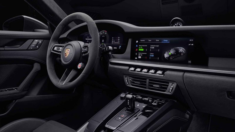 Όσο για τον εξοπλισμό, η 911 διαθέτει για πρώτη φορά πλήρως ψηφιακό πίνακα οργάνων 12,6 ιντσών, με 7 επιλογές διαμόρφωσης, μία εκ των οποίων προσφέρει την «παραδοσιακή» σχεδίαση με στροφόμετρο στο κέντρο. Εκτός αυτού, υπάρχει και μια οθόνη 10,9 ιντσών στην κεντρική κονσόλα για τον χειρισμό του συστήματος infotainment.
