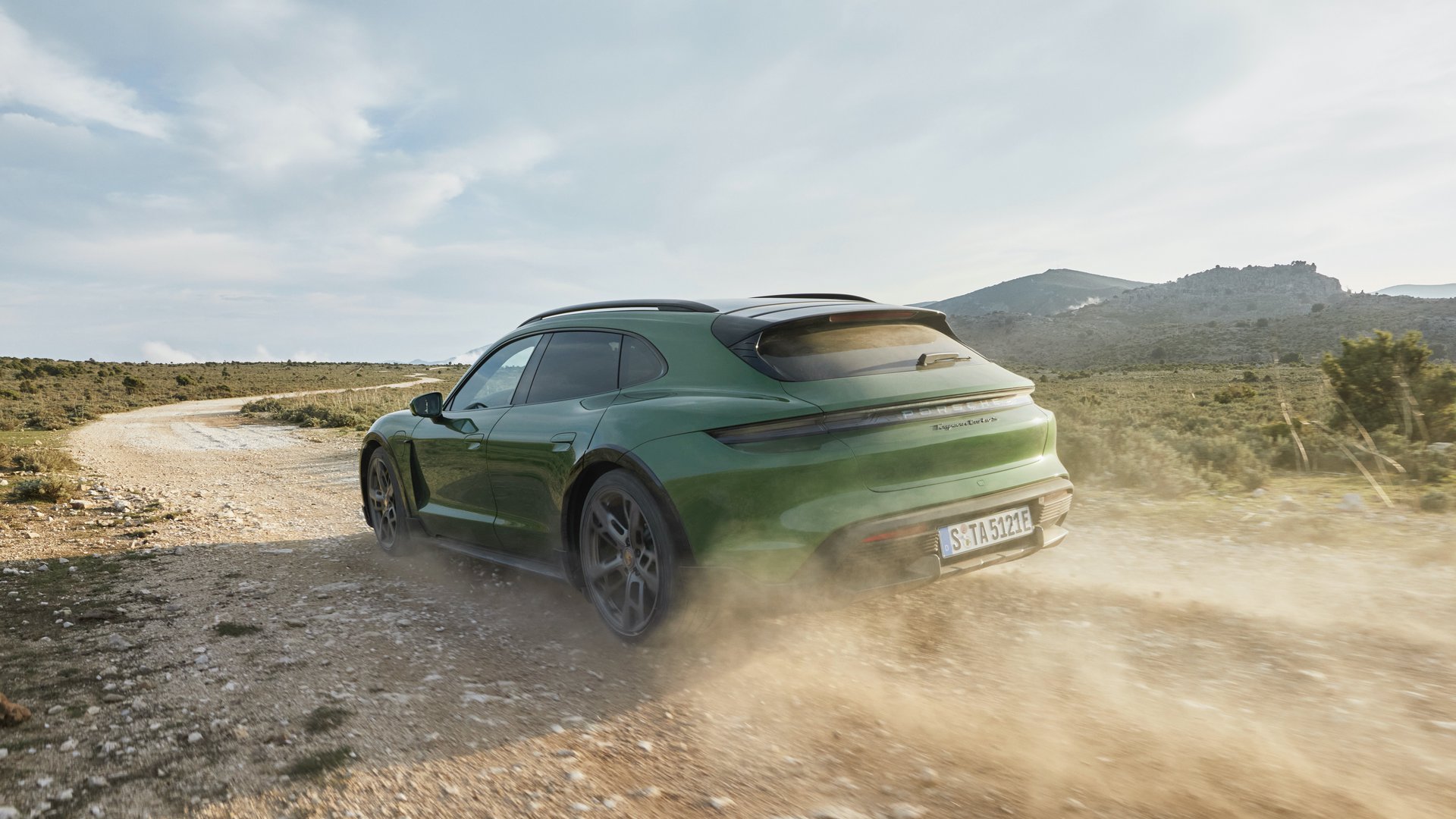 Σύντομα, βέβαια, η πρακτικότητα περνά σε δεύτερη μοίρα, μια οι τεχνικές προδιαγραφές του αυτοκινήτου φαντάζουν ικανές να επιβάλλουν τον δικό τους νόμο. Η βασική έκδοση της Porsche Taycan Cross Turismo εφοδιάζεται με δύο ηλεκτροκινητήρες και αποδίδει στη λειτουργία overboost 476 ίππους.