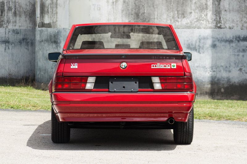 Με μόλις 66.702 μίλια (107.346 χιλιόμετρα) στο οδόμετρό της και τον V6 κινητήρα των 3,0 λίτρων να γουργουρίζει πανευτυχής κάτω από το μακρύ καπό της, η Alfa Romeo 75 Milano άλλαξε χέρια έναντι 13.000 δολαρίων.