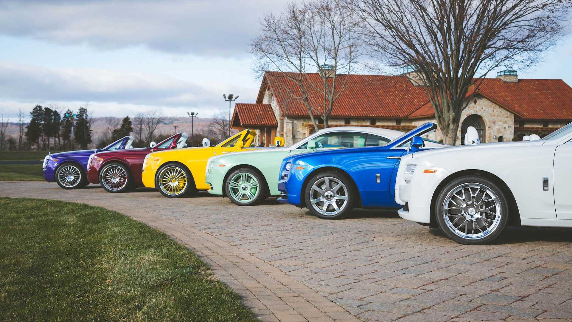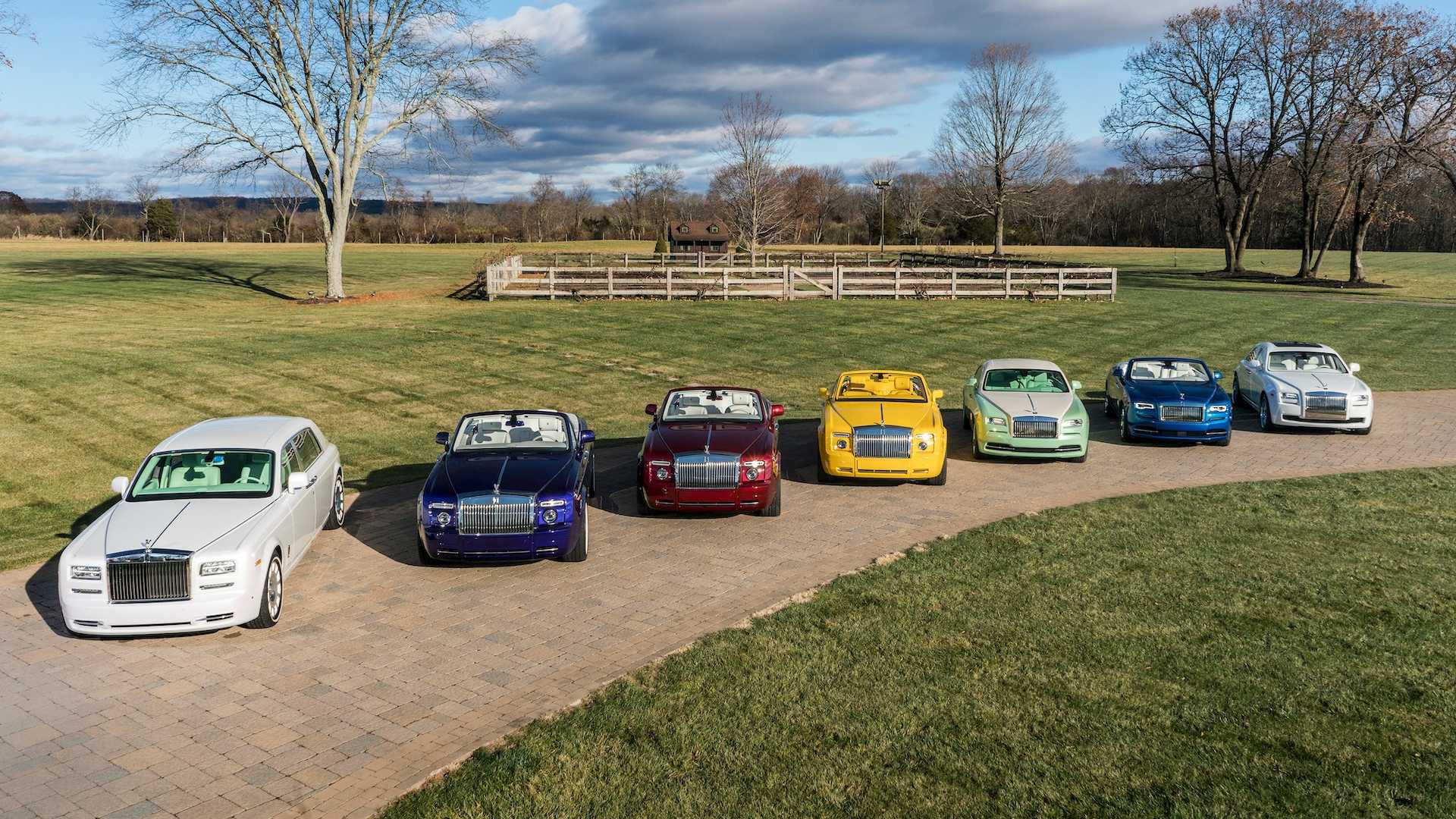 Και αν θεωρείτε παράξενη την επιλογή του πορτοκαλί, τότε ρίξτε μια ματιά και στις υπόλοιπες, από τις οποίες ξεχωρίζει μία φούξια Phantom, μία πράσινη Wraith, μία κίτρινη Phantom Drophead Coupe κ.α. Αξιοσημείωτο είναι πως η εξωτερική βαφή σε ορισμένες από αυτές τις Rolls πάει πακέτο και ο διάκοσμος. Βλέπετε, γούστα είναι αυτά…
