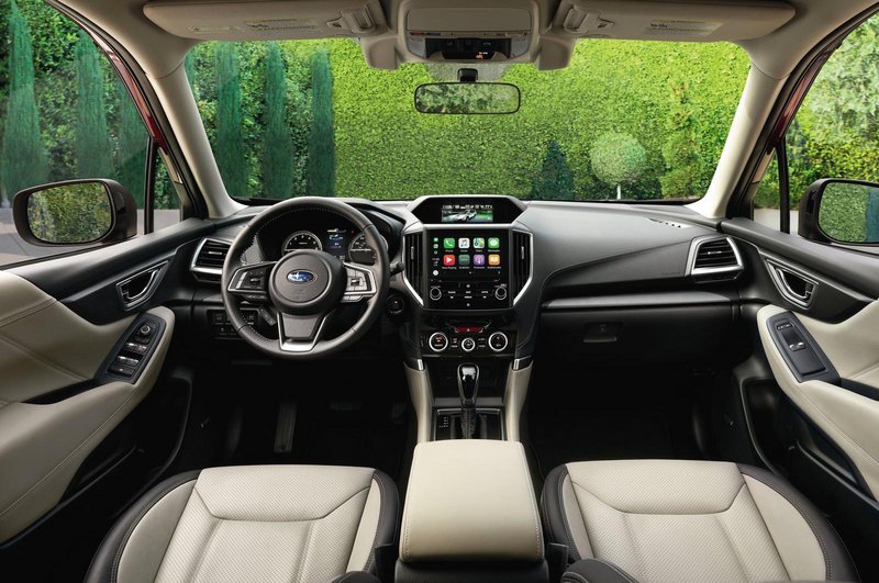 Στο εσωτερικό η εικόνα είναι πιο εντυπωσιακή και ξεχωρίζει η μεγάλη touch-screen με διαγώνιο 8,0 ίντσες (η βασική είναι στις 6,5) όταν ψηλότερα πλαισιώνεται από μια μικρότερη οθόνη. Από όσο μπορούμε να διακρίνουμε υπάρχει η γνωστή πολύ καλή εργονομία που μας έχει συνηθίσει η Subaru δίχως να απουσιάζουν οι πολλές θήκες για μικροαντικείμενα. Μεγάλο φαίνεται και το πορτμπαγκάζ αφού συνολικά οι χώροι και για τους επιβάτες έχουν αυξηθεί χάρη και στο μεταξόνιο των 2.669 mm ( 30 mm από το απερχόμενο μοντέλο).