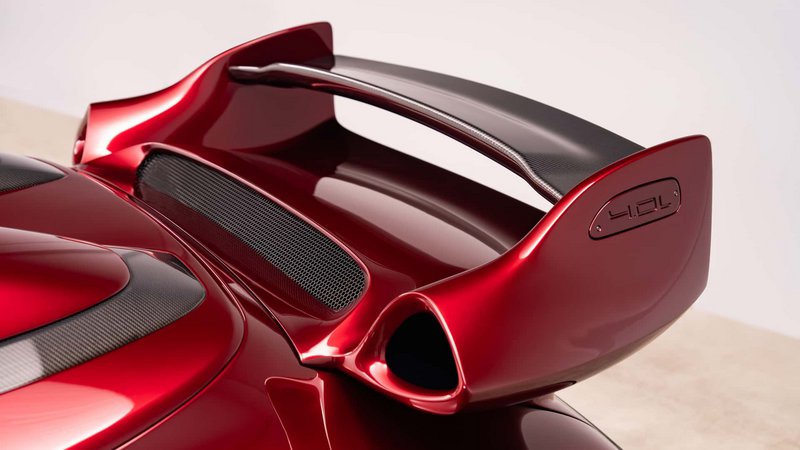 Στο πίσω τμήμα, η απουσία της κλασικής ducktail αεροτομής και η παρουσία μιας μεγάλης αεροτομής από ανθρακονήματα, σε συνδυασμό με έναν διαχύτη, διαμορφώνουν μια εικόνα που παραπέμπει περισσότερο σε αγωνιστική κατασκευή παρά σε roadster. Παρά την πολυπλοκότητα, το βάρος διατηρείται σε 1.179 kg, στοιχείο που δείχνει την προσοχή στη λεπτομέρεια.