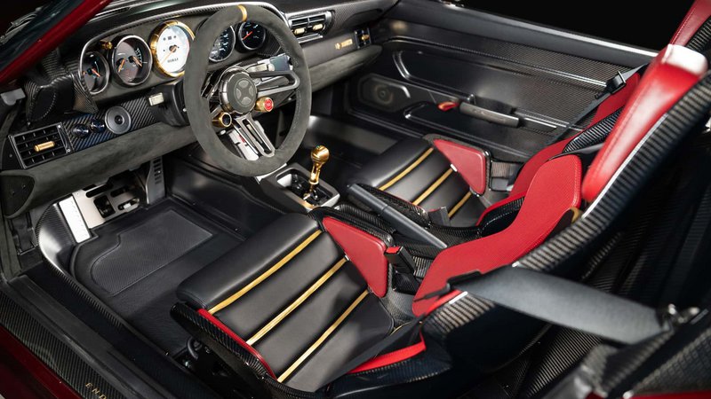 Αντίστοιχη λογική ακολουθείται και στο εσωτερικό. Ο συνδυασμός κόκκινου και μαύρου δέρματος με διακριτικές χρυσές πινελιές δημιουργεί μια συνεκτική εικόνα.