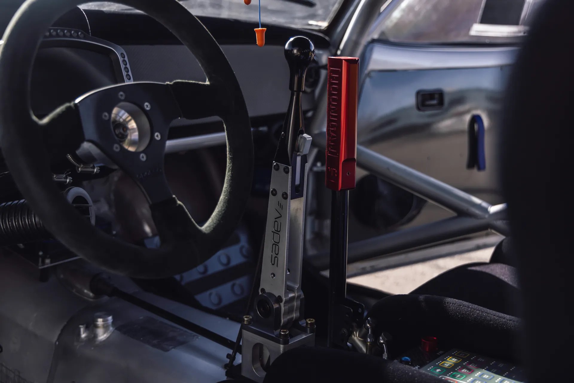 Η καμπίνα ακολουθεί την ίδια λογική. Το περιβάλλον είναι αυστηρά λειτουργικό, χωρίς περιττές προσθήκες. Κυριαρχούν τα καθίσματα της Recaro και το τιμόνι της Sparco, ενώ ο εξοπλισμός περιορίζεται στα απολύτως απαραίτητα για αγωνιστική χρήση.