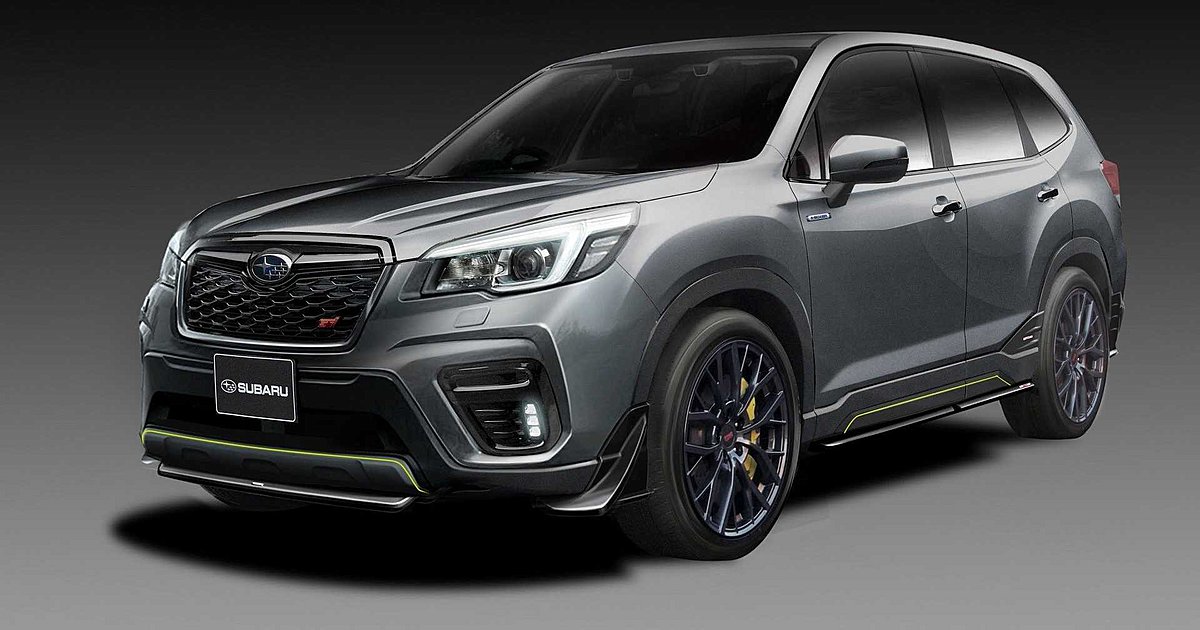 Οπτικά το Forester STI ξεχωρίζει από την εμφατική μάσκα και τον πιο δυναμικό προφυλακτήρα που τονίζεται από την πρασινωπή ρίγα στο κάτω μέρος. Οι 19άρες ζάντες είναι μαύρες αγωνιστικού τύπου με κίτρινες δαγκάνες της Brembo, ενώ οι πρασινοκίτρινη ρίγα συνεχίζει να διατρέχει το αμάξωμα στα πλαϊνά και στο πίσω μέρος.