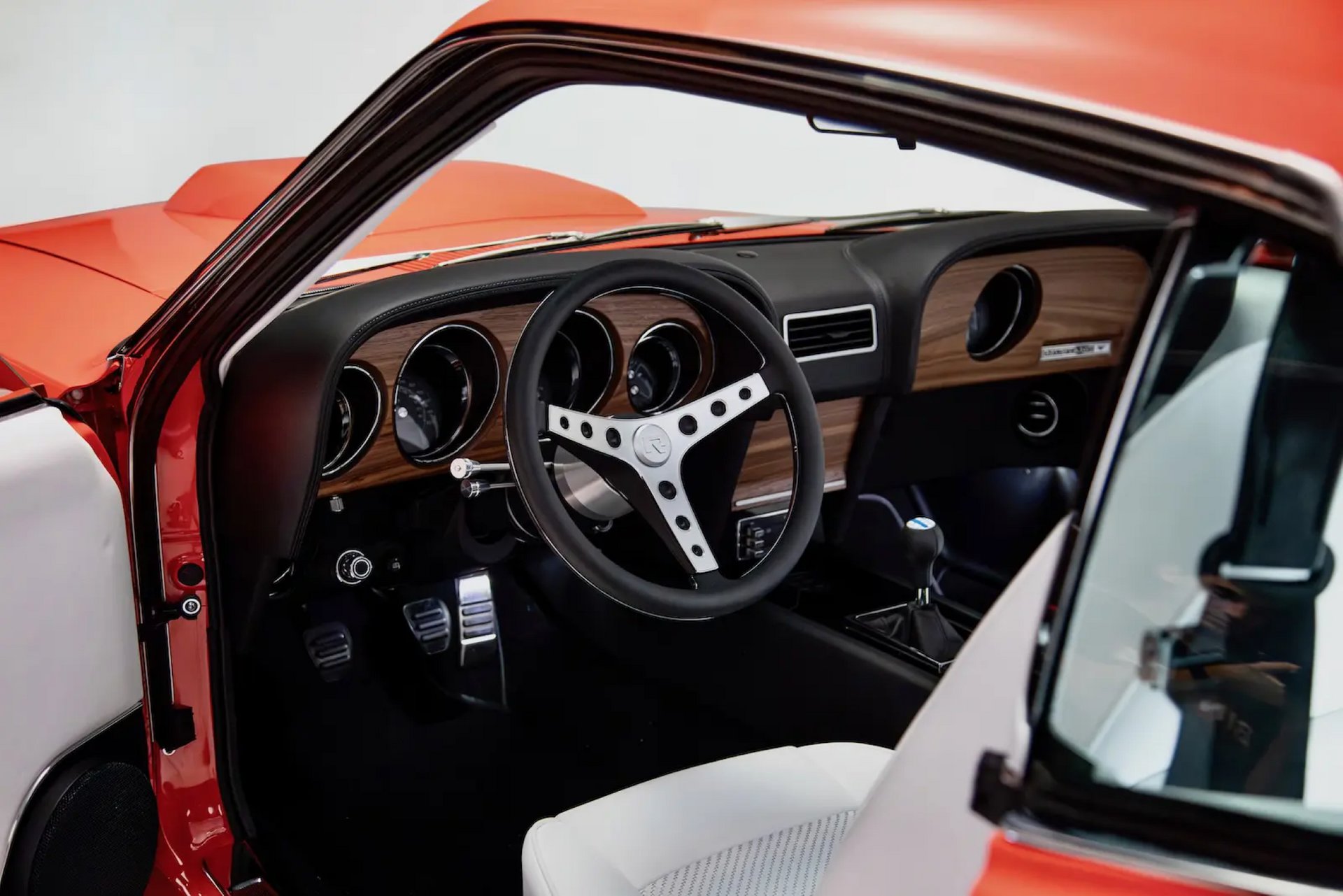 Οδηγώντας τη Revology Boss 429, γίνεται σαφές ότι το εγχείρημα δεν περιορίζεται στην εμφάνιση. Η εκκίνηση του κινητήρα συνοδεύεται από γνώριμο, «γεμάτο» ήχο, που παραπέμπει στο παρελθόν χωρίς να γίνεται υπερβολικός. Η θέση οδήγησης και η εικόνα του ταμπλό διατηρούν τον χαρακτήρα της πρώτης γενιάς Mustang, όμως η αίσθηση από τα χειριστήρια και το τιμόνι αποκαλύπτει το σύγχρονο υπόβαθρο.