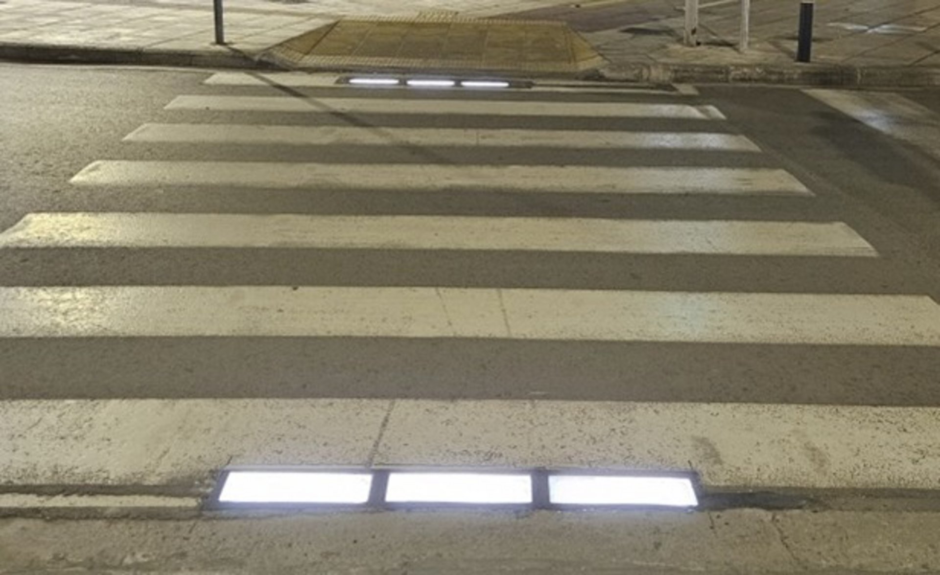 - 32 σετ φωτεινών μπαρών πεζοδρομίου τύπου LED, στις άκρες της διάβασης στον χώρο αναμονής των πεζών.