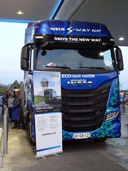 Στο πλαίσιο των εγκαινίων η IVECO-CONDELLIS παρουσίασε το ολοκαίνουργιο IVECO S-WAY LNG, ένα υπερσύγχρονο βαρύ φορτηγό. Μαζί ήταν ακόμα ένα εντυπωσιακό πορτοκαλί-γκρι φορτηγό, που προσφέρθηκε από έναν από τους μεγαλύτερους μεταφορείς της Ελλάδας. Και τα δύο μοντέλα ανέδειξαν την πρακτική εφαρμογή και τα πλεονεκτήματα του LNG στις βαριές μεταφορές.