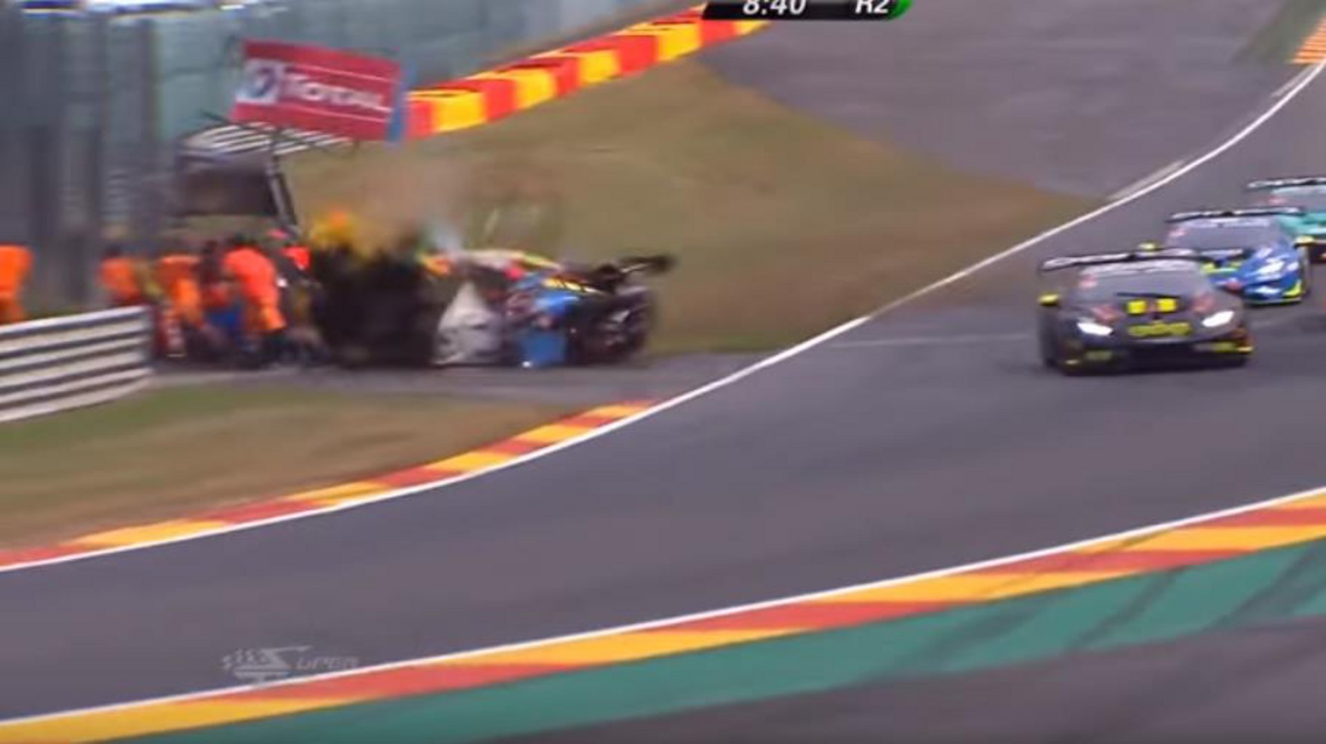 Πρόκειται για έναν αγώνα που γίνεται στο περιθώριο του 24ου στο Spa, του πρωταθλήματος Lamborghini Super Trofeo. Όπως βλέπουμε τα αυτοκίνητα συναγωνίζονται ακουμπώντας το ένα πάνω στο αλλο, με τον Fredrik Blomstedt να χάνει τελικά τον έλεγχο.