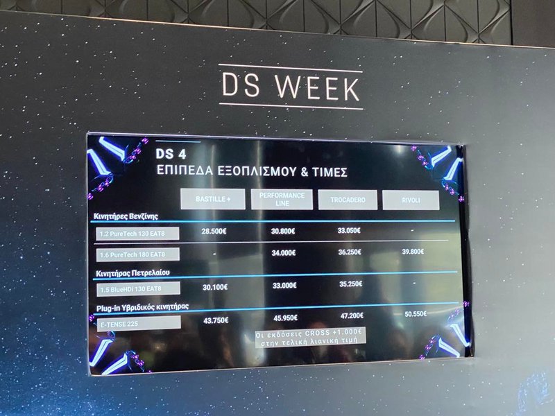 Σήμερα, η ελληνική αντιπροσωπεία της DS Automobiles ανακοινώνει τις τιμές διάθεσης του νέου DS 4 στη χώρα μας, μαζί με τις εκδόσεις εξοπλισμού του γαλλικού μοντέλου.