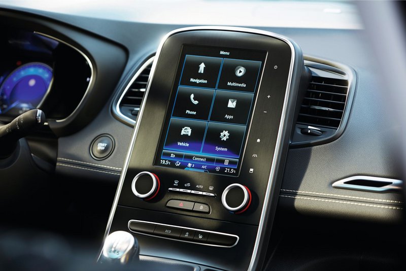 Συνολικά, στο εσωτερικό υπάρχουν 63 λίτρα αποθηκευτικού χώρου ενώ αυτός του πορτμπαγκάζ είναι τουλάχιστον 572 λίτρα, Το επίπεδο εξοπλισμού είναι υψηλό και περιλαμβάνει συστήματα ενεργού φρεναρίσματος έκτακτης ανάγκης, τήρησης ορίων ταχύτητας με αναγνώριση πινακίδων οδικής σήμανσης, καθώς και προειδοποίησης του οδηγού για εκτροπή από την επιλεγμένη λωρίδα κυκλοφορίας. Το καινούργιο Scenic έχει αποσπάσει τη διάκριση πέντε αστέρων στις δοκιμές πρόσκρουσης του «EuroNCAP». Τέλος, το νέο μοντέλο της γαλλικής εταιρείας εφοδιάζεται τόσο με τον βενζινοκινητήρα 1.3 TCe των 140 PS όσο και με τον 1.7 Blue dCi των 120 PS. Και οι δύο εκδόσεις του διατίθεται είτε με το χειροκίνητο κιβώτιο έξι σχέσεων είτε με το διπλού συμπλέκτη «EDC». Οι τιμές πώλησής του στη χώρα μας ξεκινούν από τα 28.190 ευρώ.