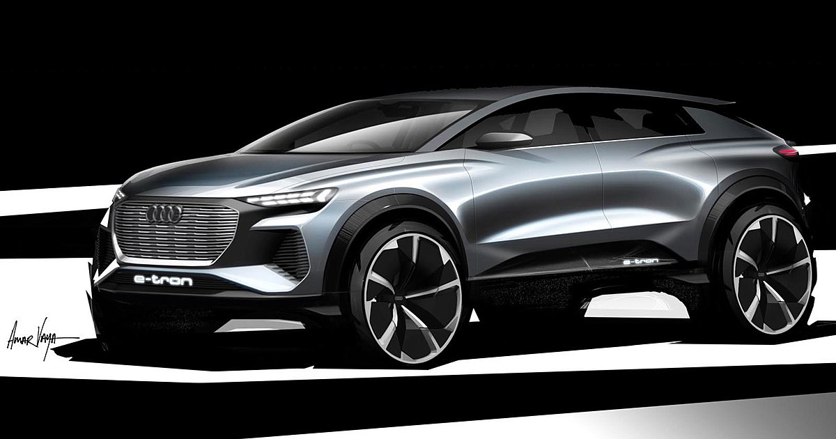 Εδώ βλέπετε τα πρώτα σκίτσα που έδωσε στην δημοσιότητα η Audi και που δείχνουν το ηλεκτρικό Q4 με την πρόσθετη ονομασία E-Tron. Πρόκειται για το πρώτο ηλεκτρικό μοντέλο της Audi που θα βασιστεί στην μεταβλητή πλατφόρμα MEB (αποκλειστικά για EV), αφού το E-Tron χρησιμοποιεί μια τροποποιημένη του Q5.