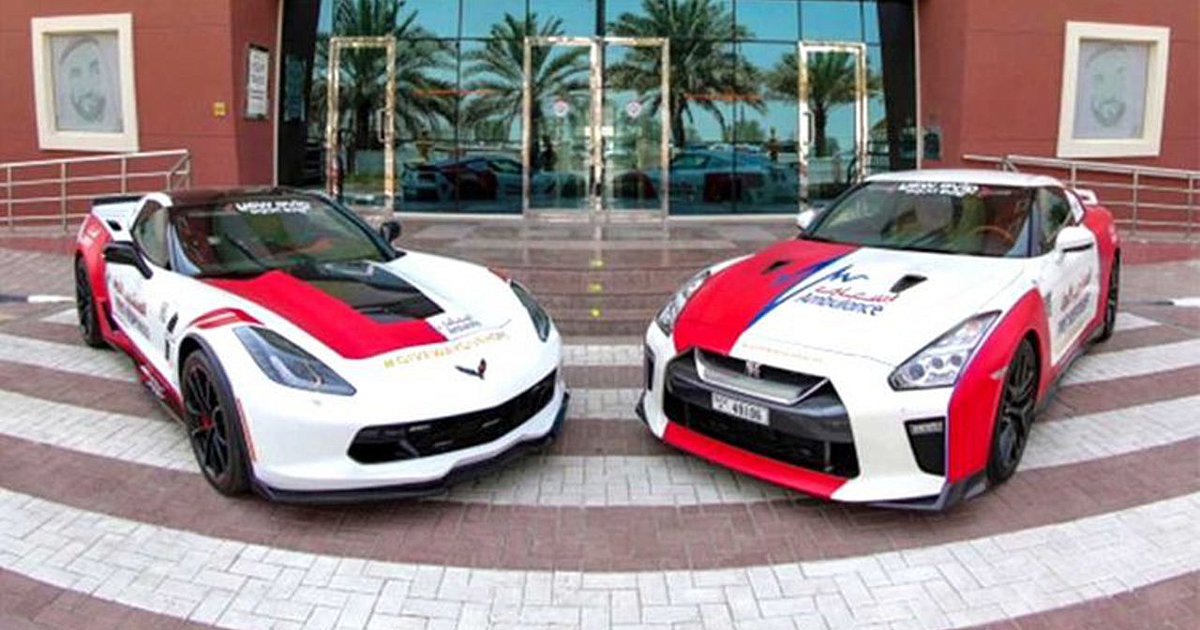 Πρόκειται για μια Corvette C7 Gran Sport και ένα Nissan GT-R, για τις περιπτώσεις που χρειαστεί κάποιος να φτάσει πολύ γρήγορα στο νοσοκομείο. Φυσικά αστειευόμαστε μιας και τα δύο supercar δεν έχουν τον απαιτούμενο χώρο στο εσωτερικό τους για να μετακινούν ασθενή σε φορείο.