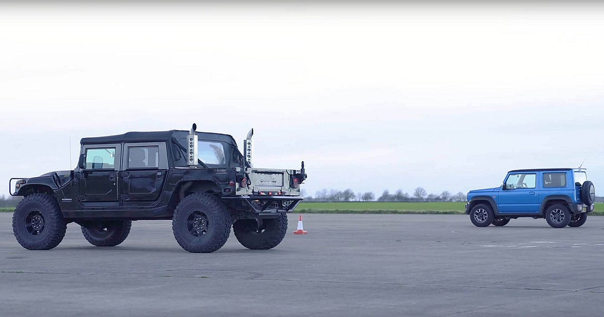 Για την μετάδοση της ισχύος το Hummer έχει ένα παλιάς τεχνολογίας αυτόματο κιβώτιο τεσσάρων σχέσεων και το Jimny ένα χειροκίνητο με πέντε. Στο βίντεο θα δείτε να περνούν από τρεις δοκιμασίες, των φρένων, του roll και της επιτάχυνσης στα 0-400 m. Πάντως, μην βάλετε στοίχημα για την τελευταία αφού δεν κερδίζει πάντοτε ο μεγαλύτερος…