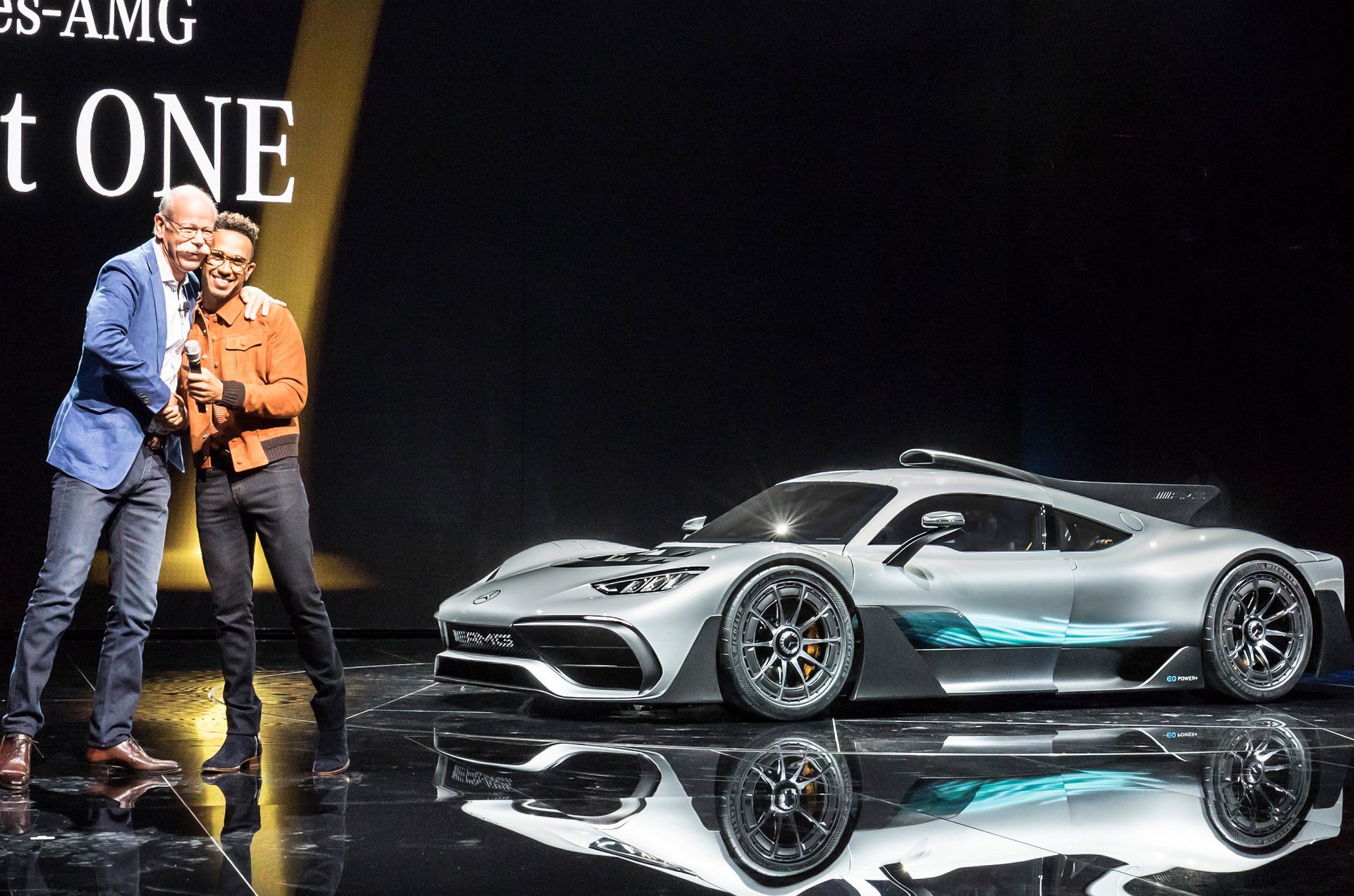 Η παρουσίαση του Mercedes-AMG One ως πρωτότυπο το 2017, στην Έκθεση αυτοκινήτου της Φρανκφούρτης, δημιούργησε έντονες εντυπώσεις και προσμονή. Μάλιστα, το γεγονός ότι αποκαλύφθηκε επίσημα παρουσία του Lewis Hamilton έχει τη σημασία του (στη φωτογραφία κάτω δεξιά, αγκαλιά με τον κ. Dieter Zetsche, πρώην Πρόεδρο Διοικητικού Συμβουλίου της Daimler A.G. και Διευθύνων Σύμβουλο της Mercedes-Benz κατά τη συγκεκριμένη εκδήλωση). Οι άνθρωποι της γερμανικής εταιρείας έθεσαν ως στόχο να δημιουργήσουν «ένα μονοθέσιο της Formula 1 για τον δρόμο», όπως είπαν εμφατικά, δηλώνοντας τον χαρακτήρα του και την τεχνολογία του.