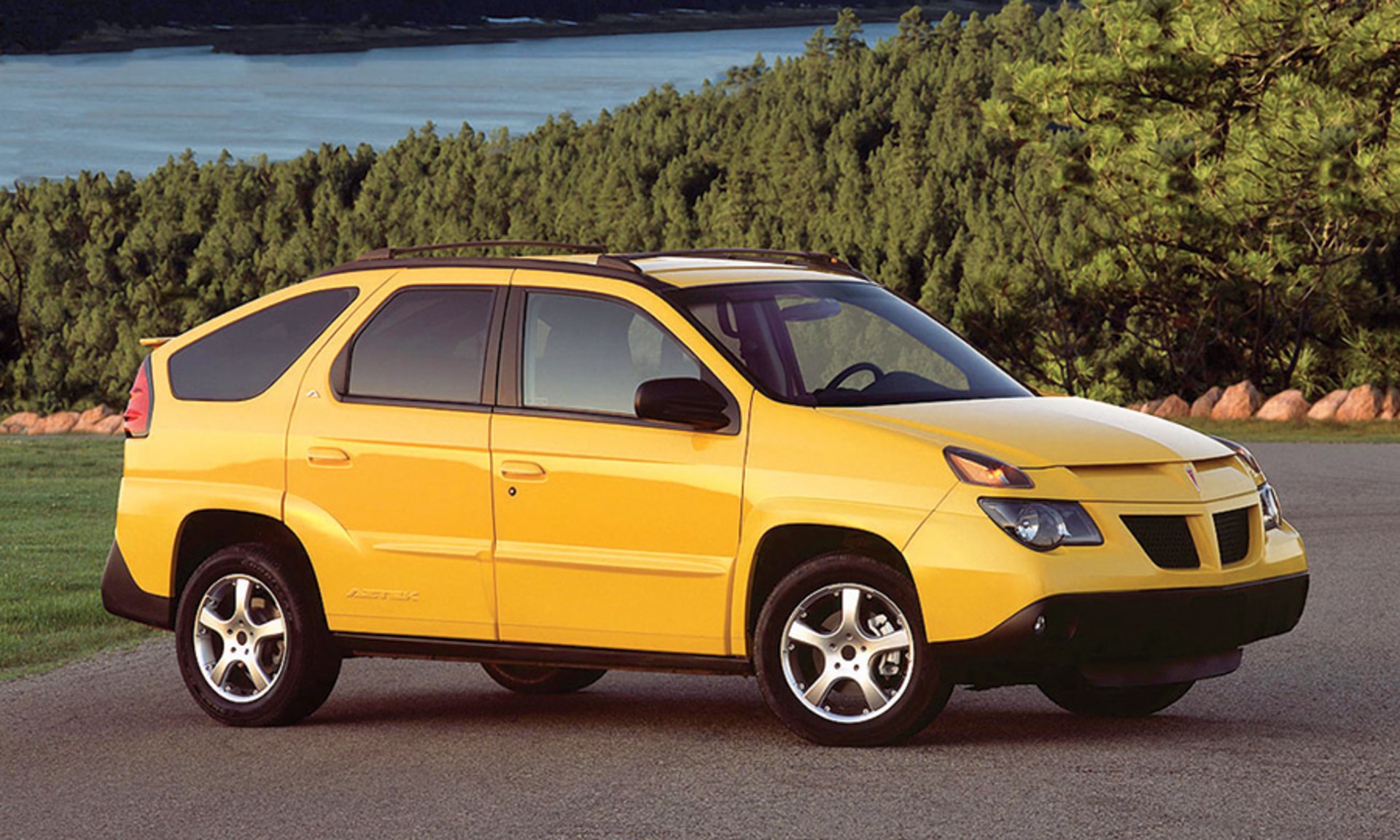 Αδελφό μοντέλο με τη Buick Rendezvous (μην κάνετε τον κόπο να τη γκουγκλάρετε, καταλαβαίνετε…) το Aztec μεσουράνησε στις ΗΠΑ στις αρχές του 2000. Όπως εύστοχα το είχε περιγράψει κάποτε ο βραβευμένος με Pulitzer, Dan Neil, «Με τα πολλαπλά μάτια και τα υπερφυσικά ρουθούνια του, το Aztek φαίνεται παραμορφωμένο και τρομακτικό, κάτι που τα σκυλιά του γαβγίζουν και οι καθεδρικοί θα το προσλάμβαναν για να χτυπά τις καμπάνες. Το κρίμα είναι πως, κάτω από όλη αυτή την ασχήμια, υπήρχε ένα χρήσιμο και ικανό crossover».