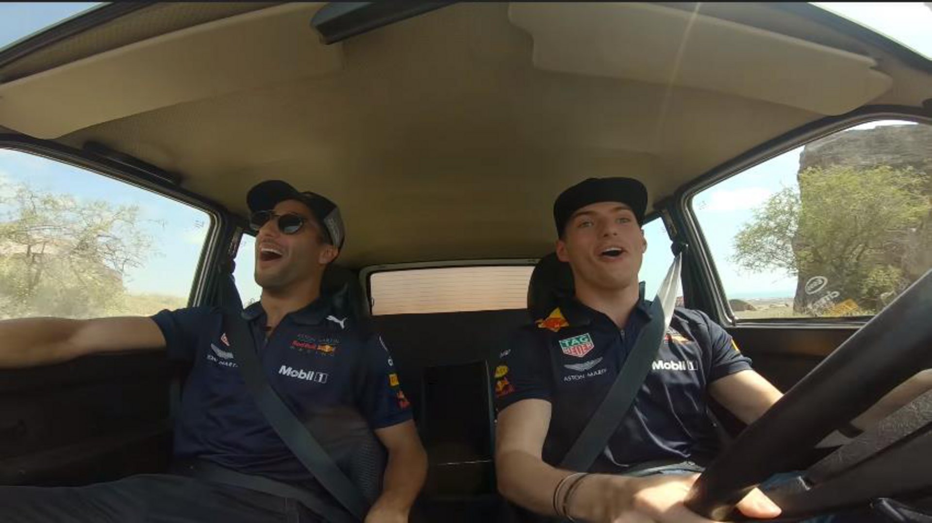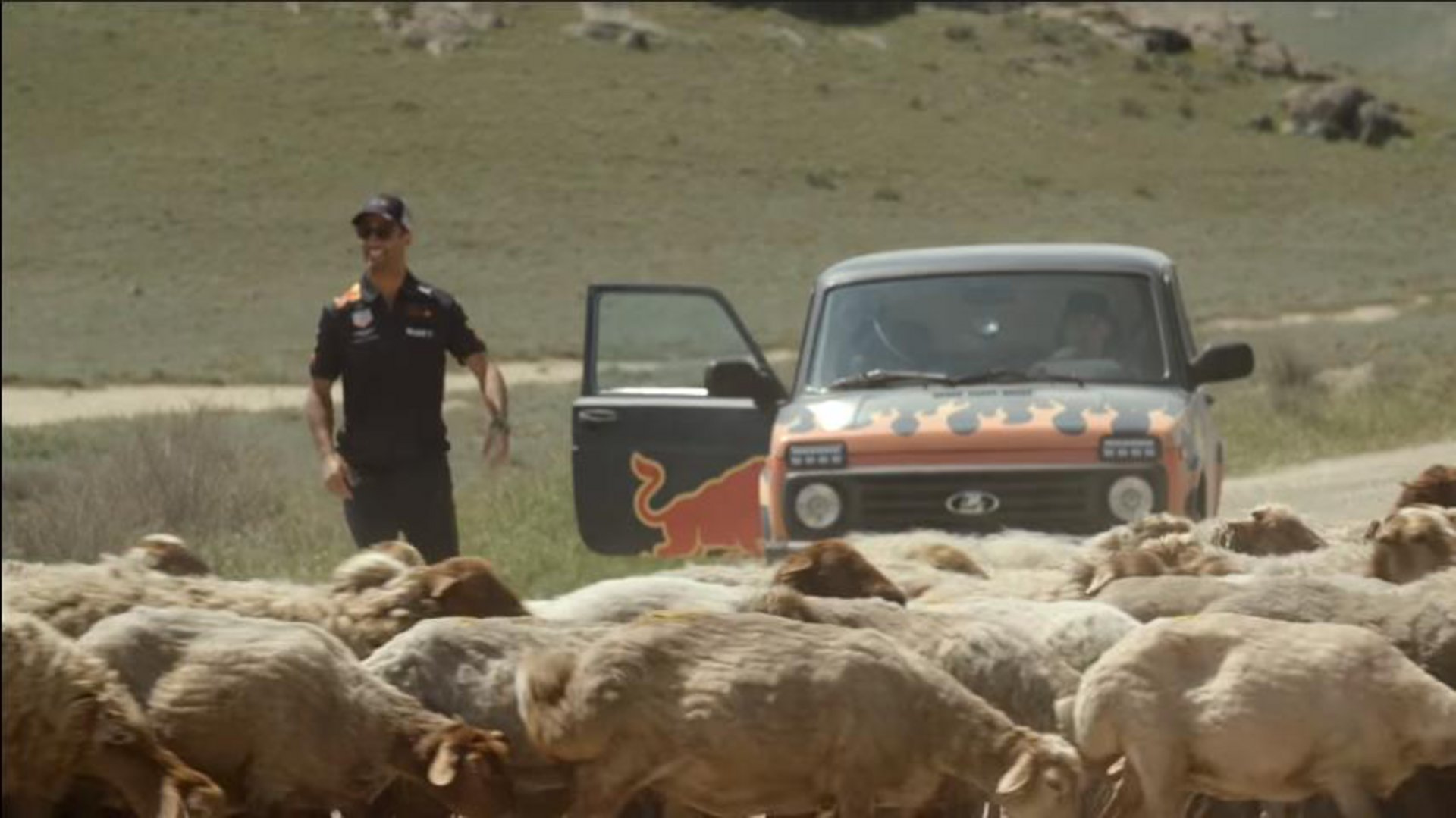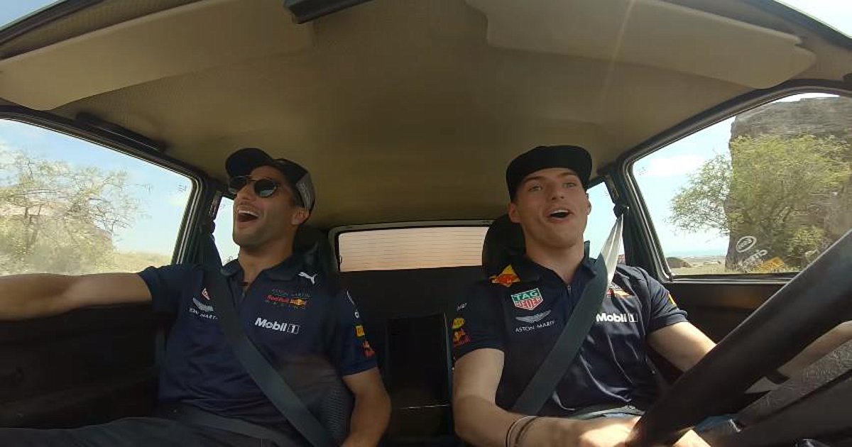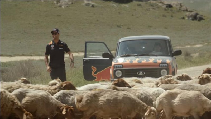 Όπως βλέπουμε στο video οδηγός είναι ο Verstappen και συνοδηγός ο Ricciardo και φαίνεται να το διασκεδάζουν αφάνταστα. Μάλιστα κάποια στιγμή ο Ricciardo αναγκάζεται να κατέβει κάτω από το Lada και να απομακρύνει από τον δρόμο κάποια πρόβατα για να προχωρήσουν.