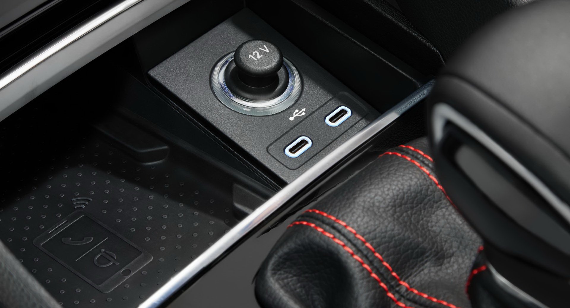 Σημαντική είναι η προσθήκη νέων θυρών USB-C στην θέση των USB-A για ταχύτερη φόρτιση και μεταφορά δεδομένων. Επίσης, υπάρχει μια προαιρετική θύρα και πίσω από τον καθρέπτη οπισθοπορείας.