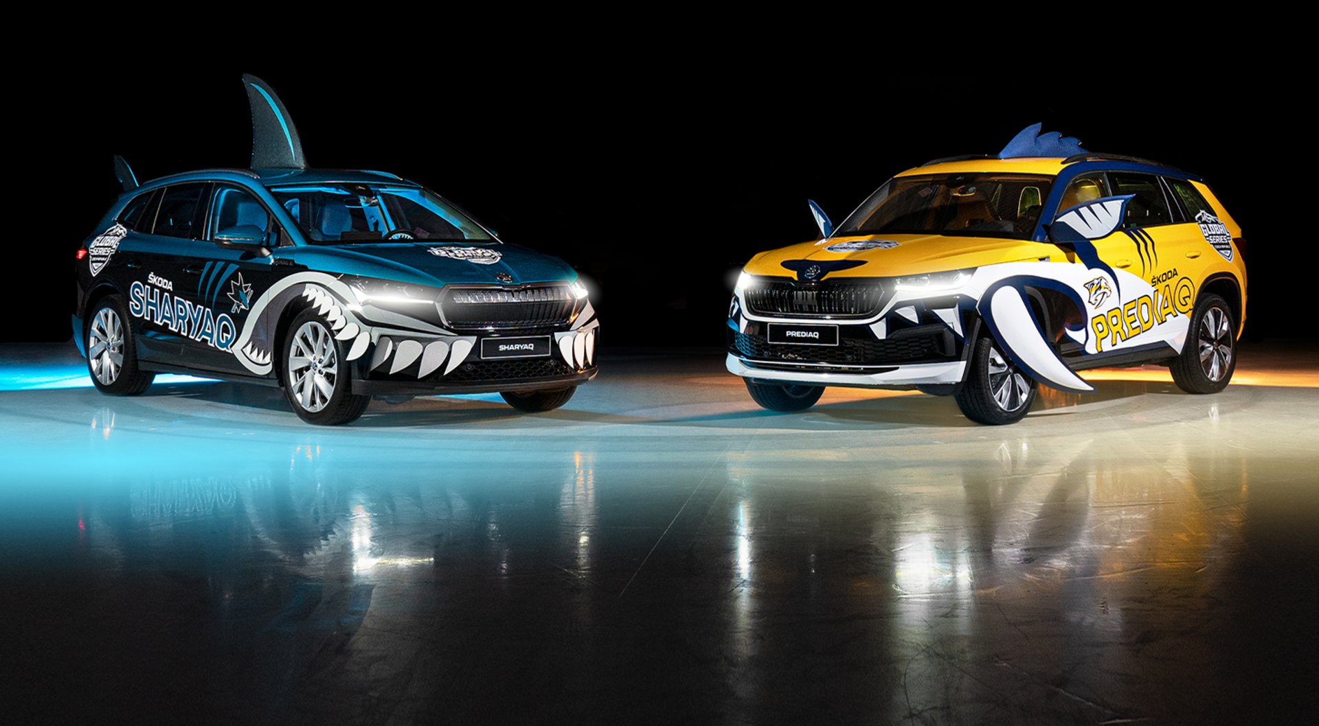 Αυτή τη φορά, η Skoda υποδέχεται δύο ομάδες από το κορυφαίο πρωτάθλημα χόκεϊ της Β. Αμερικής, National Hockey League (NHL), τους San Jose Sharks και τους Nashville Predators, οι οποίοι θα αναμετρηθούν στο στάδιο O2 στην Πράγα σε λίγες ώρες. Δύο από τα κορυφαία σε πωλήσεις μοντέλα της εταιρείας θα τιμήσουν τις δύο ομάδες, αποτελώντας τις μασκότ τους.