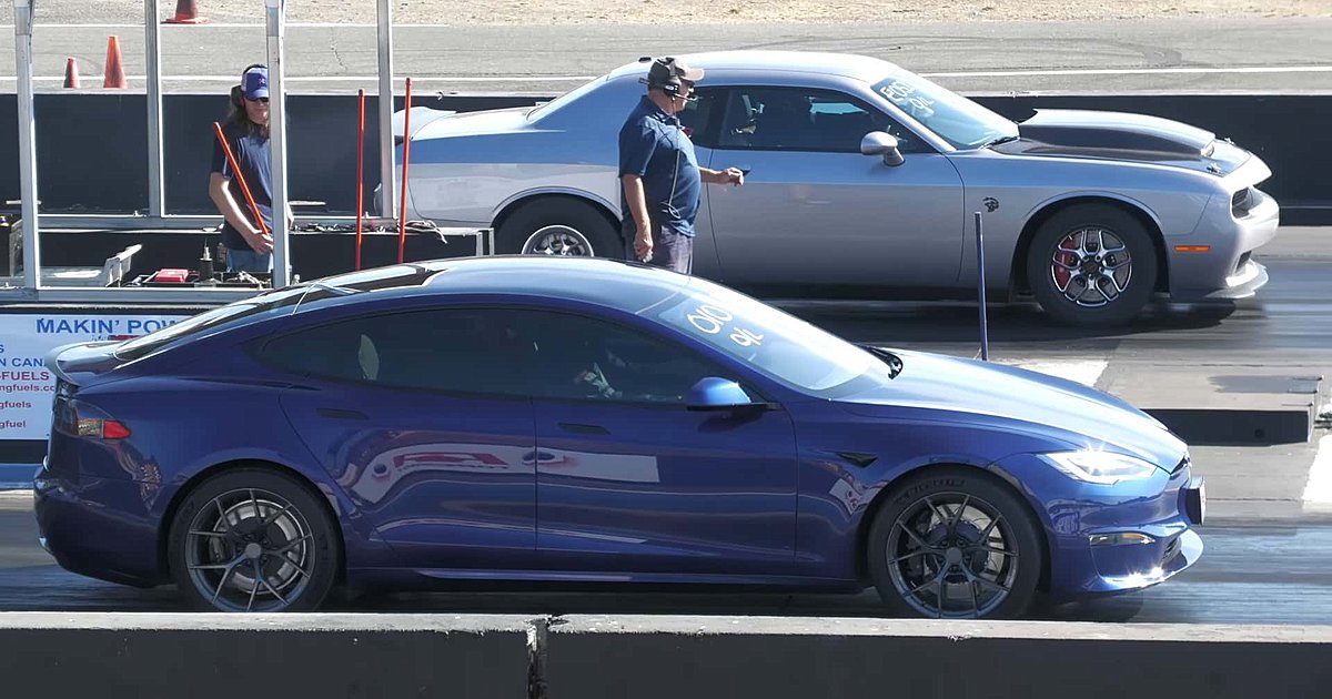 Το κανάλι Wheels στο YouTube κατέγραψε κι ανέβασε μία μάχη στο dragstrip (πραγματικόdragstrip) ανάμεσα στο παλιό και το νέο: την DodgeChallengerHellcat και το TeslaModelSPlaid, δύο κορυφαίους εκπροσώπους δύο τελείως διαφορετικών χώρων.