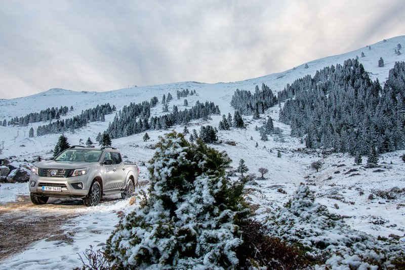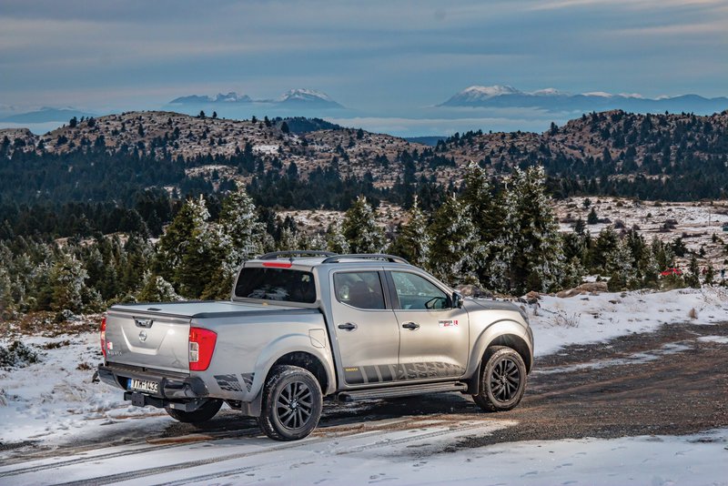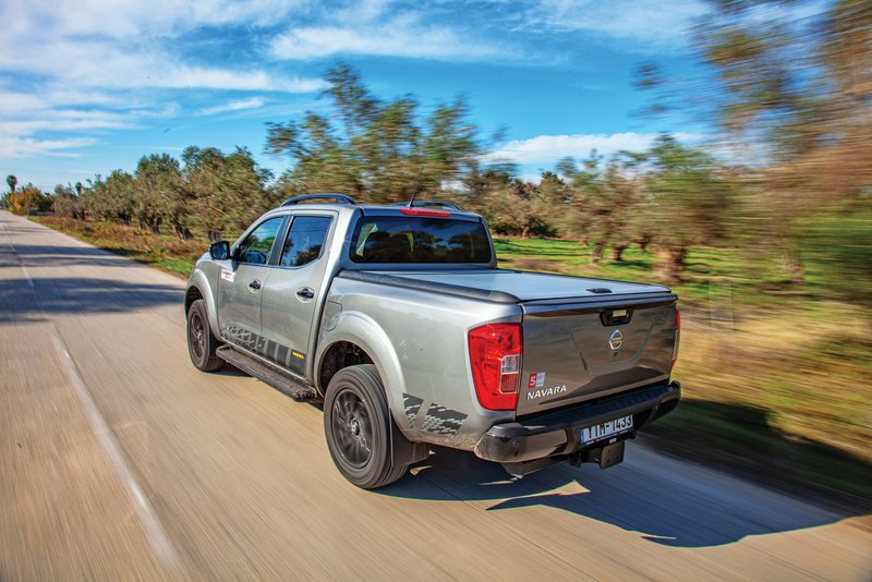 Αντίστοιχες είναι και οι αλλαγές στο σαλόνι, με νέα θερμαινόμενα καθίσματα τα οποία διαθέτουν δερμάτινη επένδυση με κίτρινες ραφές, τα οποία πέρα από την αισθητική αναβάθμιση αποδεικνύονται και πολύ άνετα στην πολύωρη οδήγηση. Ο εξοπλισμός επίσης είναι κορυφαίος για αυτοκίνητο της κατηγορίας, με στάνταρ αρκετά στοιχεία όπως οι αισθητήρες στάθμευσης, η κάμερα οπισθοπορείας, το Hill Start Assist, το Hill Descent Control, σύστημα φρεναρίσματος έκτακτης ανάγκης και σύστημα πανοραμικής θέασης. Υπάρχει επίσης και η δυνατότητα παραγγελίας του αυτοκινήτου με δυνατότητα κλειδώματος και του εμπρός διαφορικού, το οποίο αν συνδυαστεί με το αντίστοιχο κλείδωμα του πίσω διαφορικού παρέχει τη δυνατότητα στο Navara να περάσει -κυριολεκτικά- από παντού (ή τουλάχιστον εκεί που χωράει). Το αυτοκίνητο της δοκιμής μας είχε και ένα πολύ όμορφο κάλυμμα της καρότσας, εξαιρετικής ποιότητας και αισθητικής, το οποίο πέρα από την life-style διάσταση που προσθέτει στο Navara, συμβάλλει σημαντικά και στην μείωση της κατανάλωσης καυσίμου.