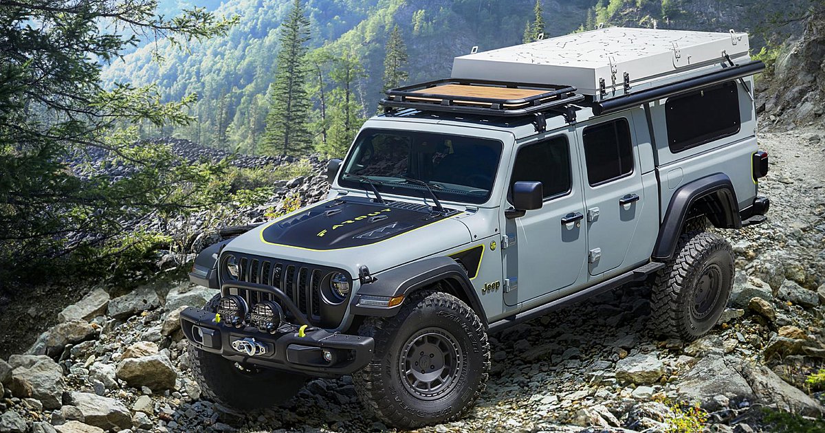 Πρόσφατα η Jeep παρουσίασε την πρωτότυπη εκδοχή Gladiator Farout η οποία αποτελεί συνέχεια της Wayout και έχει κάτω από το καπό της τον ίδιο ΕcoDiesel. Για την περίσταση υπάρχει ένα κουβούκλιο που μπαίνει πάνω από την καρότσα και πάνω του εδράζεται μια σκηνή που μπορεί να φιλοξενήσει έως τέσσερα άτομα. Αξιοσημείωτη είναι η θέση για τραπεζάκι, ένα λειτουργικό ψυγειάκι κ.α.