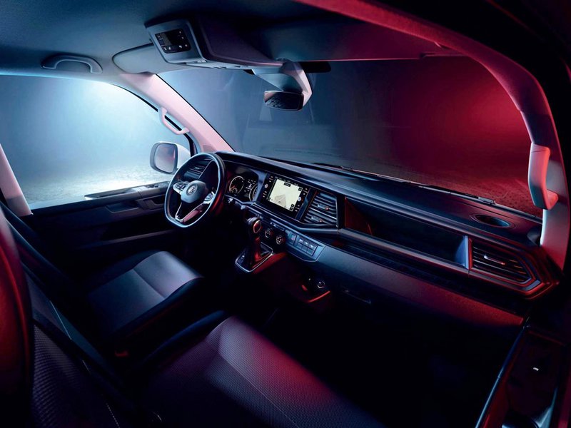 Στο εσωτερικό το ανανεωμένο Transporter διαθέτει το τρίτης γενιάς σύστημα πολυμέσων MIB3 που προσφέρει υψηλά επίπεδα συνδεσιμότητας και διαχείρισης του εταιρικού στόλου. Στο μέσο του ταμπλό δεσπόζει μια μεγάλη οθόνη αφής. Διαθέσιμος είναι πλήρης εξοπλισμός με τα τελευταία συστήματα υποβοήθησης όπως είναι τα Lane Assist, Park Assist, side protection, Rear Traffic Alert, Trailer Assist, Cross Wind Assist, Post-Collision Braking System και Hill Start Assist.