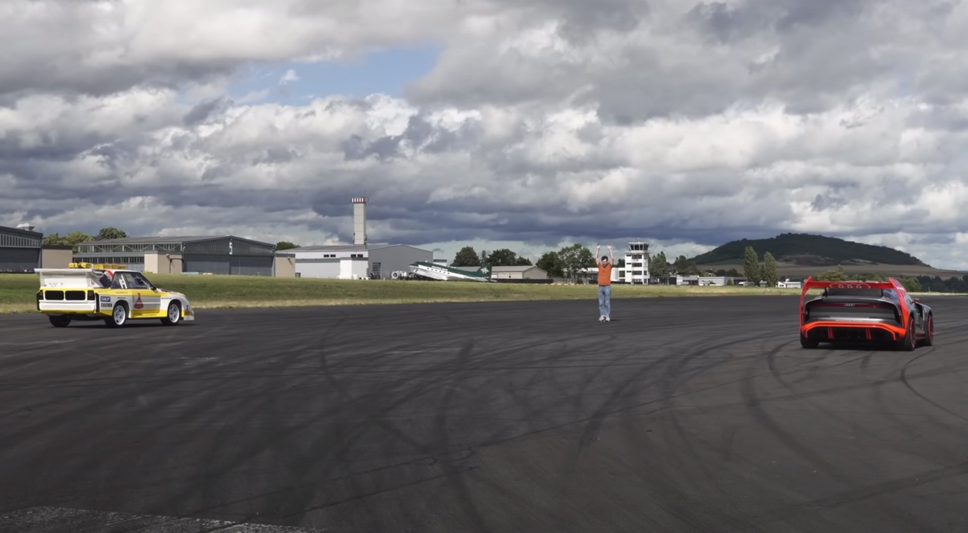 Δίπλα του, ο θρύλος του WRC κι ένα από τα πιο γνωστά αυτοκίνητα της Audi, το Quattro S1 Group B, που έχει 5κύλινδρο κινητήρα 2,1L με απόδοσης 500 PS και ροπή στα 480 Nm. Το «ατού» του είναι πως ζυγίζει μόλις 1.090 κιλά.