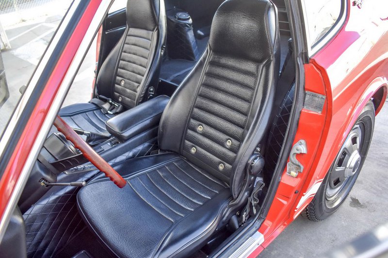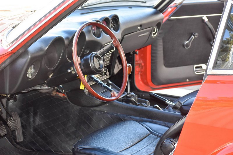 Το εσωτερικό του είναι κλασικό για σπορ μοντέλο των αρχών της δεκαετίας του ’70: επενδύσεις από μαύρη δερματίνη, ξύλινο τιμόνι αλλά και ξύλινος επιλογέας, ραδιόφωνο Hitachi AM, ενώ στις ιδιαιτερότητές του περιλαμβάνεται το σύστημα κλιματισμού -μιλάμε για πριν από 50 χρόνια!- αλλά και σπέσιαλ μαρσπιέ.