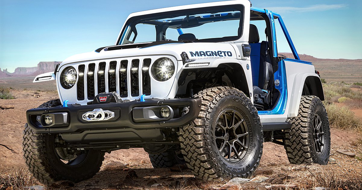 Το αμιγώς ηλεκτρικό Jeep Wrangler Magneto βασίζεται σε ένα 3θυρο Wrangler Rubicon, και όπως χαρακτηριστικά αναφέρει ο Επικεφαλής σχεδιασμού της μάρκας στη Β. Αμερική, κ. Mark Allen, δημιουργήθηκε για να δουν πως θα μπορούσε να ανταπεξέλθει σε ακραίες συνθήκες ένα Jeep χωρίς κινητήρα εσωτερικής καύσης.