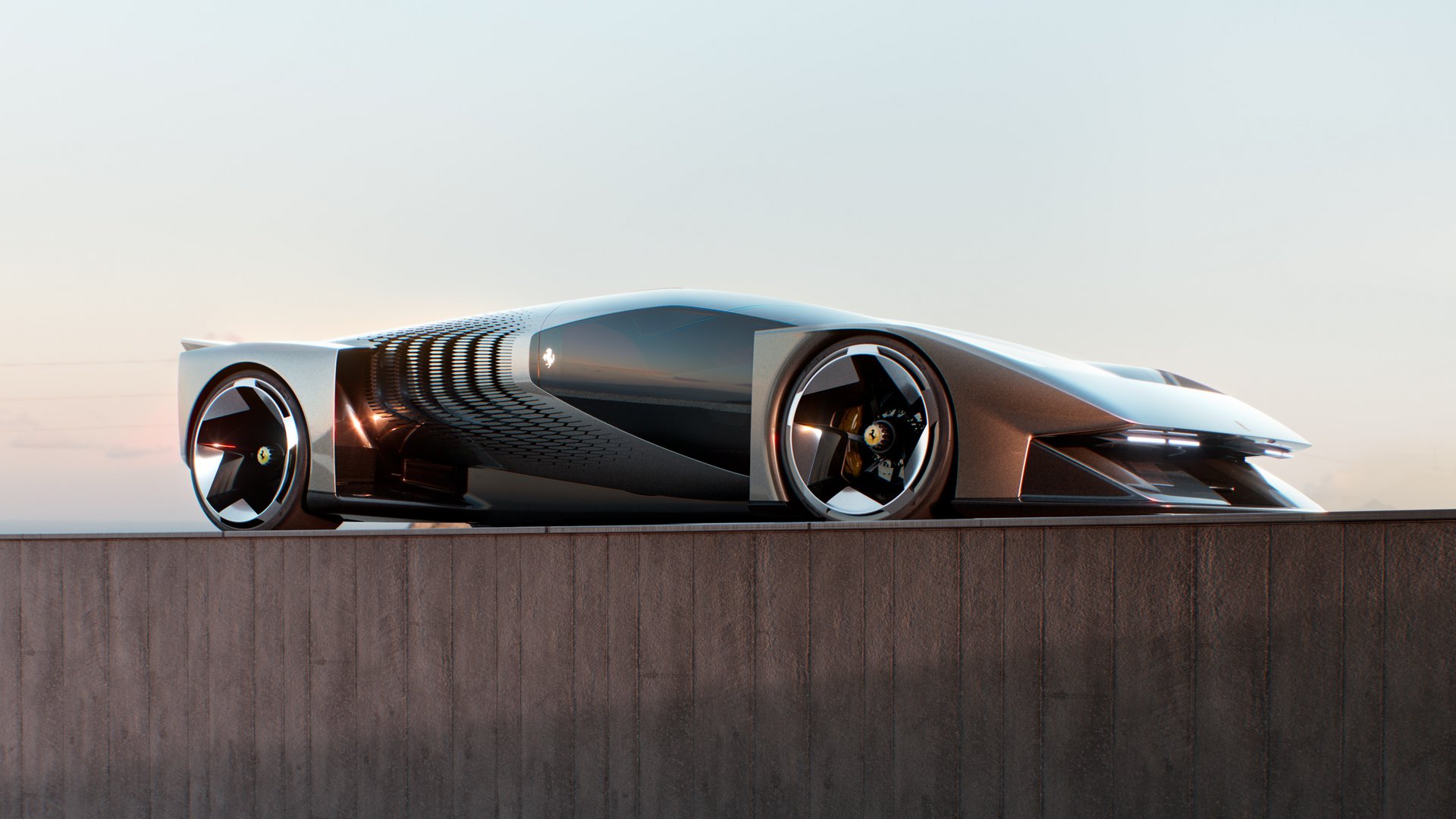 Το ενδιαφέρον είναι πως η Ferrari οραματίστηκε αυτό το ψηφιακό μοντέλο με θερμικό κινητήρα, παρά το γεγονός ότι ο σχεδιασμός του παραπέμπει έντονα σε ένα φουτουριστικό, ηλεκτρικό supercar.
