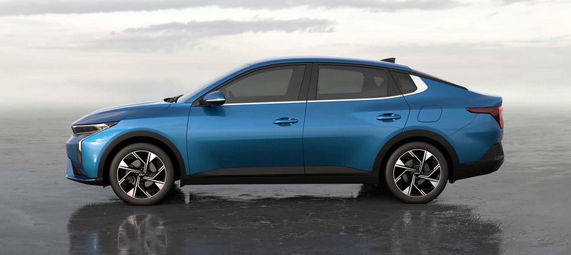 Στο πλάι, οι μαύρες λεπτομέρειες στους θόλους των τροχών μαζί με μια διπλή γραμμή που ξεκινά από το φτερό, δημιουργούν μια πιο στιβαρή εικόνα. Όσο για την οροφή, η κλίση της «αντανακλά» τη fastback σχεδίαση που καταλήγει στο πίσω μέρος, στο οποίο μια λεπτή γραμμή φωτισμού LED συνδέει μεταξύ τους τα φωτιστικά σώματα.