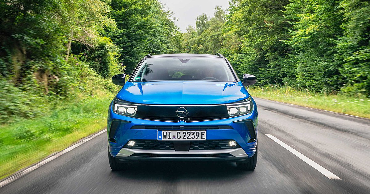 Η ανανέωση έρχεται πρώτα στο εξωτερικό του Grandland. Το αμάξωμα είναι διαθέσιμο στους χρωματισμούς Kobalt Blue και Karmin Red, οι οποίοι ταιριάζουν απόλυτα με τη μαύρη οροφή. Επίσης είναι διαθέσιμες νέες ζάντες αλουμινίου 18 ιντσών.