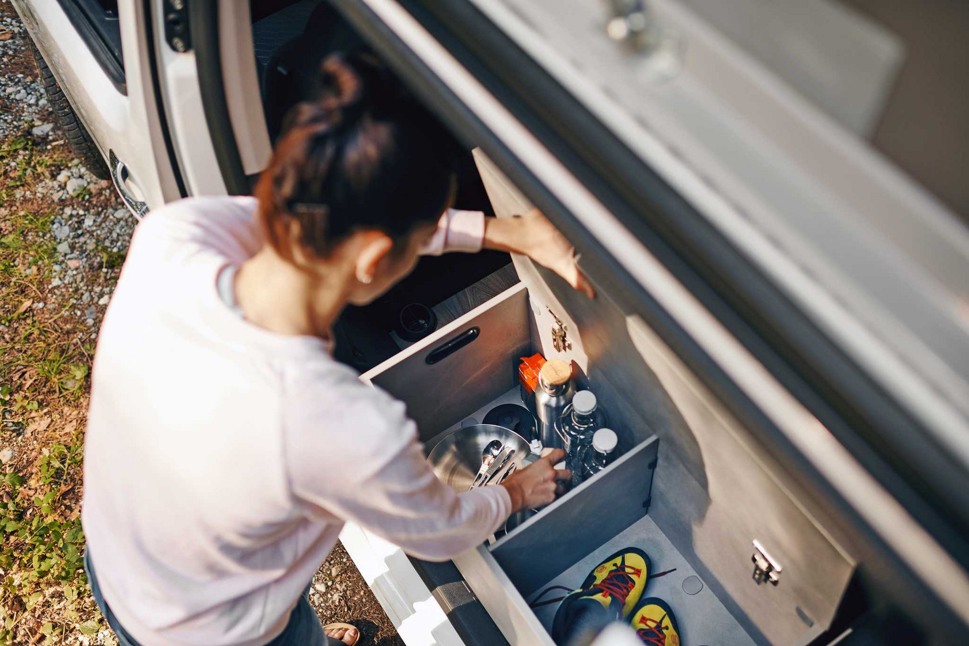 Επειδή ο εντοιχισμένος εξοπλισμός είναι ελάχιστος, το Crosscamp Lite προσφέρει άφθονες προσαρμοζόμενες λύσεις αποθήκευσης. Μεταξύ αυτών είναι: μία κουζίνα υγραερίου που μπορεί να μεταφερθεί στο πίσω τμήμα, αποθηκευτικός χώρος για τη μπαταρία του καθιστικού και θάλαμος για μία φιάλη αερίου 1,8 kg. Δίπλα στη στάνταρ δεύτερη συρόμενη πόρτα στην πλευρά του οδηγού βρίσκεται ένα αφαιρούμενο δοχείο που μπορεί να προσαρτηθεί στο πίσω μέρος του οχήματος.