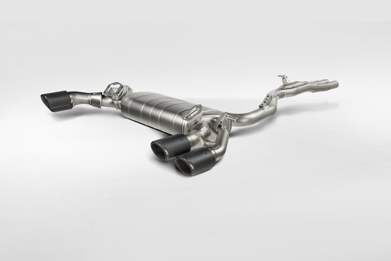 Πιο συγκεκριμένα, πρόκειται για το κλασικό σχέδιο της εταιρείας με τις τέσσερις διαγώνιες εξαγωγές αέρα, οι οποίες είναι τοποθετημένες συμμετρικά, και έχουν κατασκευαστεί στο χέρι από ανθρακόνημα, με το εσωτερικό στρώμα να είναι φτιαγμένο από τιτάνιο, ενώ οι ενώσεις από ατσάλι υψηλών προδιαγραφών. Η χρήση αυτών των ελαφρών υλικών «γλιτώνει» 49,6% του βάρους, σε σχέση με τη συμβατική εξάτμιση, κάτι που μεταφράζεται σε 12,6 kg.