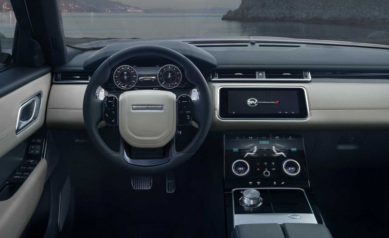 Στο εσωτερικό το Range Rover Velar SV Autobiography Dynamic Edition, που θα πωλείται μόνο για 12 μήνες, έχει ένα πιο σπορ τιμόνι που συνδυάζεται ωραία με τα αλουμινένια paddles του αυτόματου κιβωτίου, ενώ προαιρετικά διατίθενται και διακοσμητικά από ανθρακόνημα.