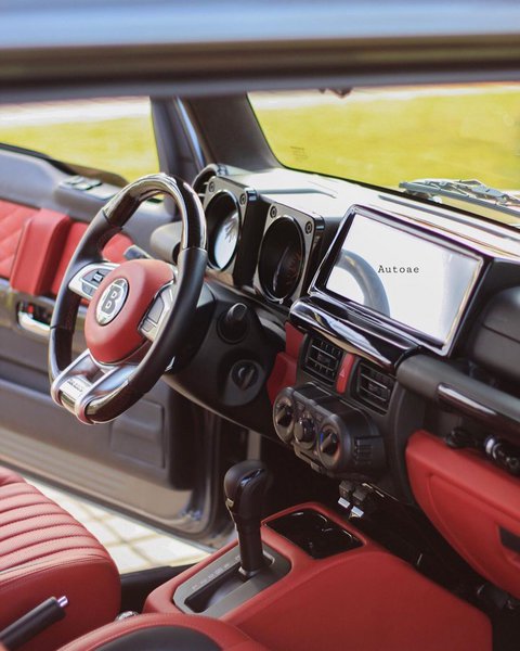 Πιστό αντίγραφο του εμβληματικού offroader, το συγκεκριμένο Suzuki Jimny δεν αρκείται στις αναβαθμίσεις που έχουν αλλάξει άρδην την εικόνα του αμαξώματός του αλλά επιχειρεί να ακολουθήσει και στο εσωτερικό του το εξοπλιστικό παράδειγμα της G-Class Brabus.