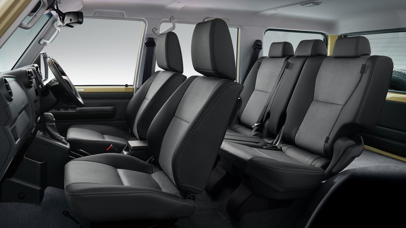 Όσο για τον σχεδιασμό, το μοντέλο είναι διαθέσιμο στην Ιαπωνία με 6 πόρτες (η πόρτα του χώρου αποσκευών ανοίγει σαν ντουλάπα), ενώ στον εξοπλισμό περιλαμβάνεται ο επιπλέον καθρέφτης που υπήρχε και στο αυθεντικό LC 70, ο οποίος προσφέρει καλύτερη οπτική στη νεκρή γωνία.