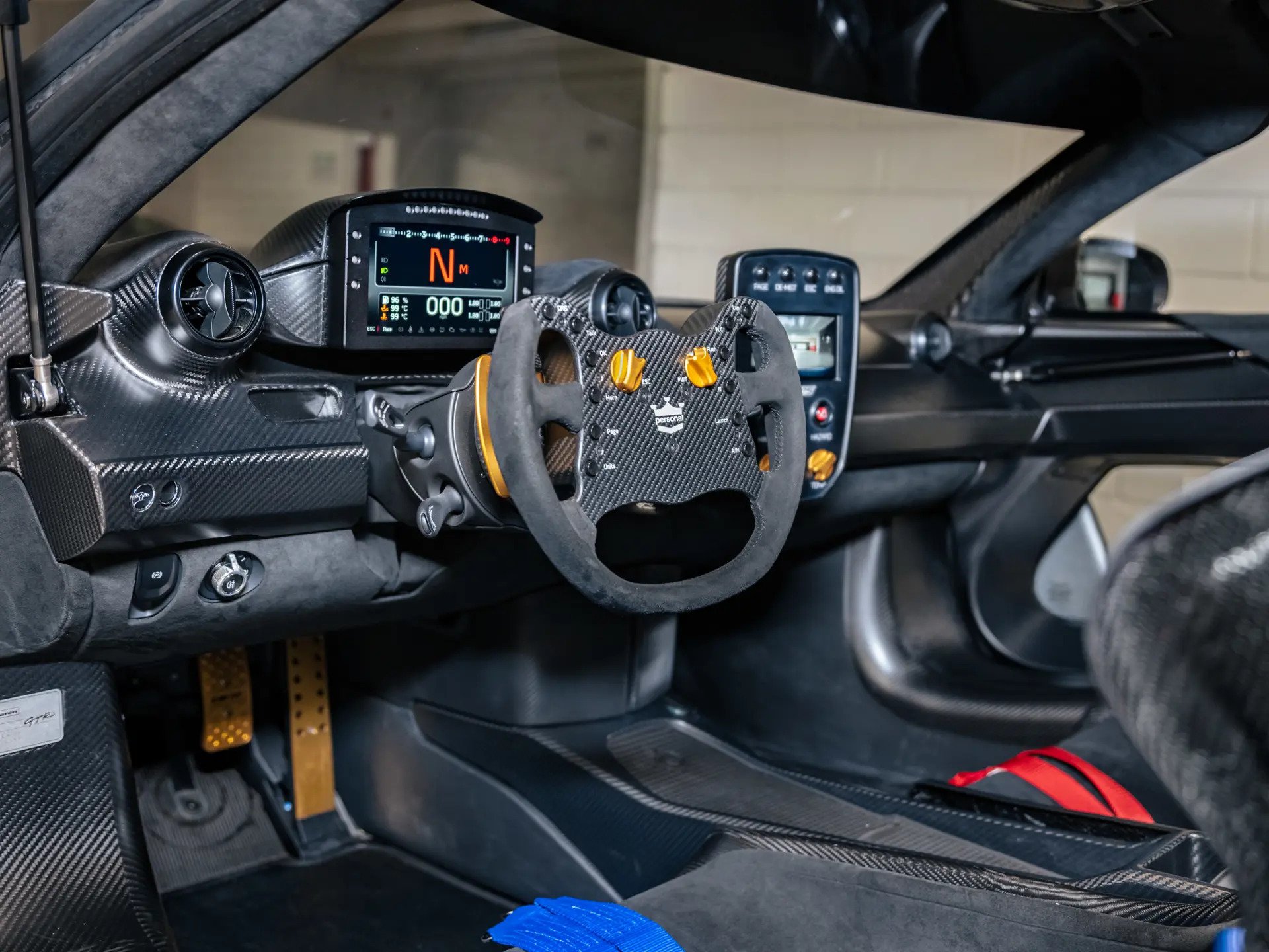 Η κυριαρχία του ανθρακονήματος συνεχίζεται και στο εσωτερικό, το οποίο έχει βαριά επιρροή από τη νικηφόρα F1 GTR. Τα καθίσματα είναι πιστά αντίγραφα εκείνων που βρίσκει κανείς στο αυθεντικό αγωνιστικό και συνοδεύονται από αγωνιστικές ζώνες Willans σε μπλε χρώμα, ενώ έχει προστεθεί ένα τιμόνι από ανθρακόνημα και χρυσά πεντάλ.