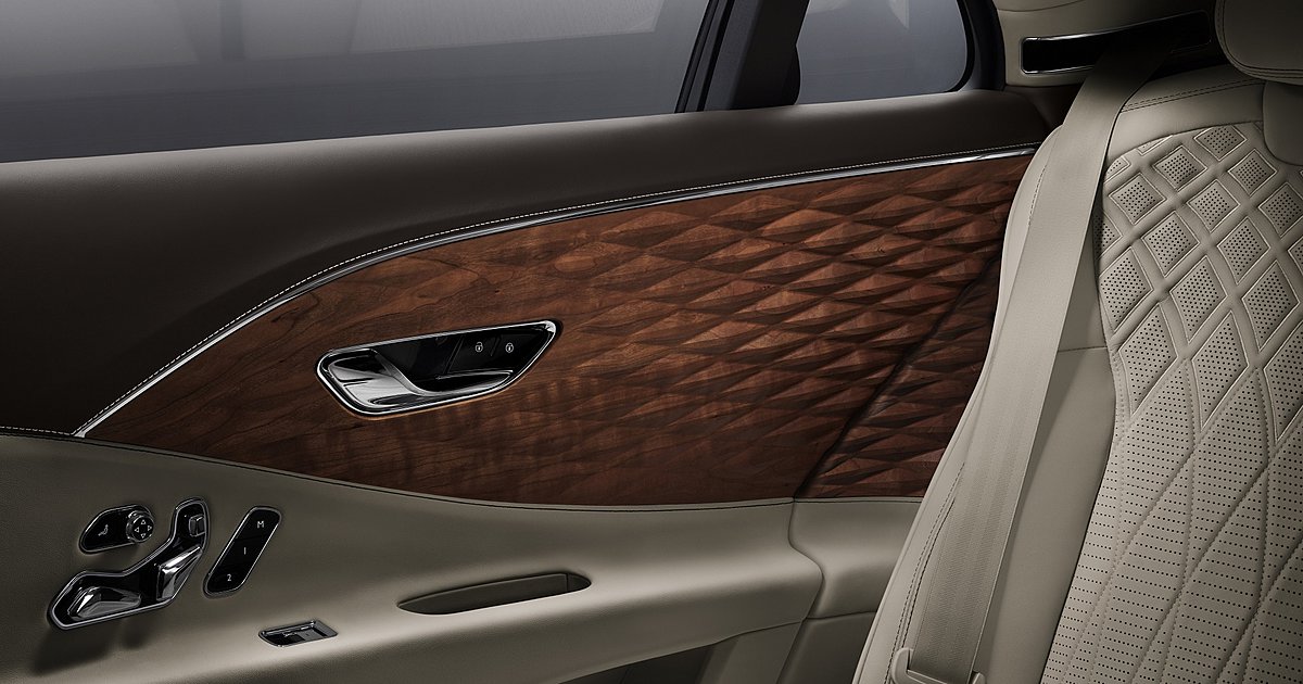 Ωστόσο, στην Bentley βρήκαν τον τρόπο να το δημιουργήσουν και να το προσφέρουν στους πελάτες τους που το επιθυμούν. Η τρισδιάστατης υφής λεπτή και ακριβή ξύλινη επένδυση προσφέρεται στην κορυφαία εξοπλιστική σειρά «Mulliner» της βρετανικής εταιρείας. Η ανάγλυφη επιφάνειά της έχει το πατρόν διαμαντιού και τοποθετείται κυρίως στο εσωτερικό των πίσω θυρών. Είναι χειροποίητη και χρησιμοποιείται μασίφ ξύλο από υψηλής ποιότητας αμερικανική καρυδιά ή αμερικανική κερασιά και η Bentley φροντίζει να αναδασώνει τα δέντρα που χρησιμοποιεί, σύμφωνα με όσα ανακοινώθηκαν.